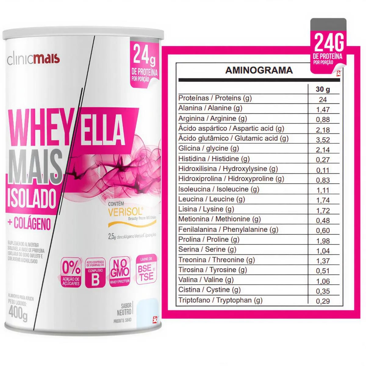 Whey Mais Ella Isolado + Colágeno Verisol Sabor Neutro 400G - Clinic Mais