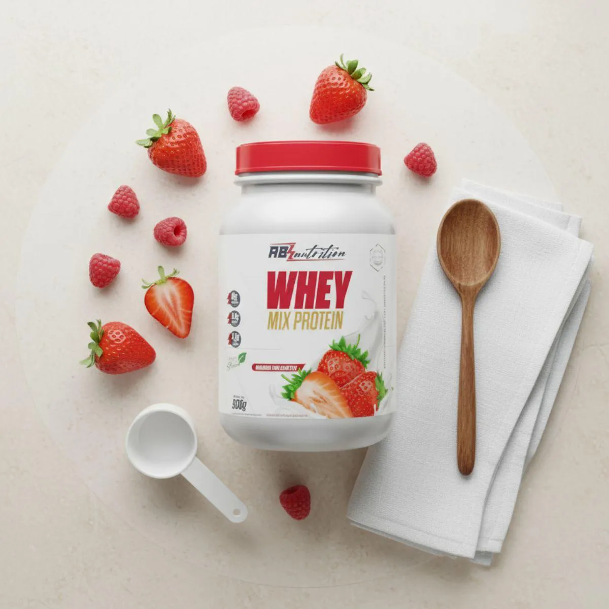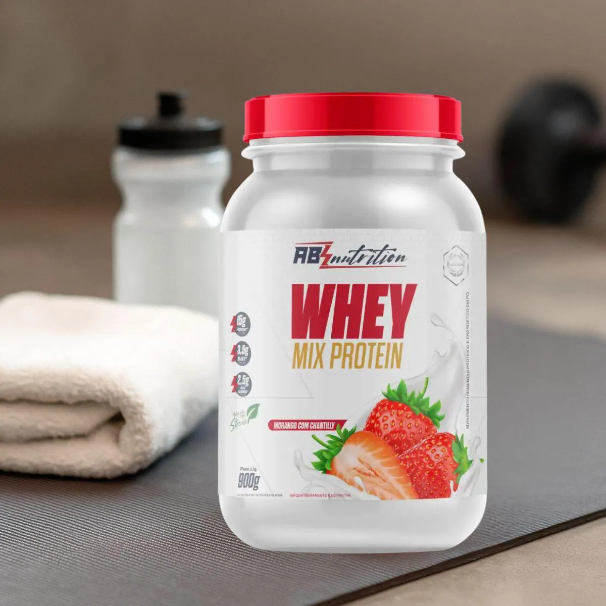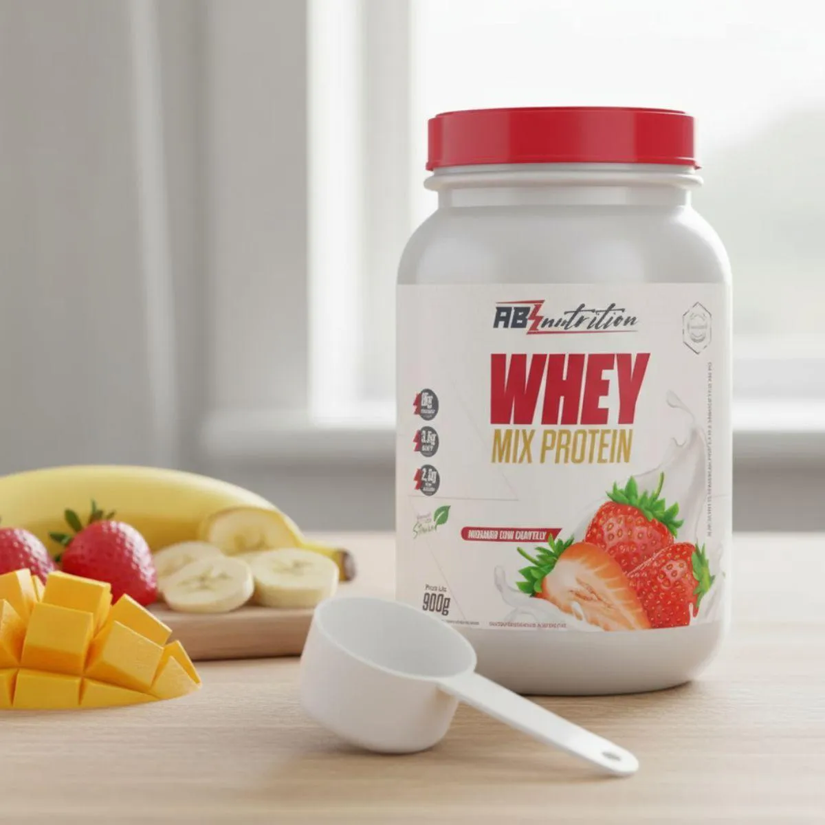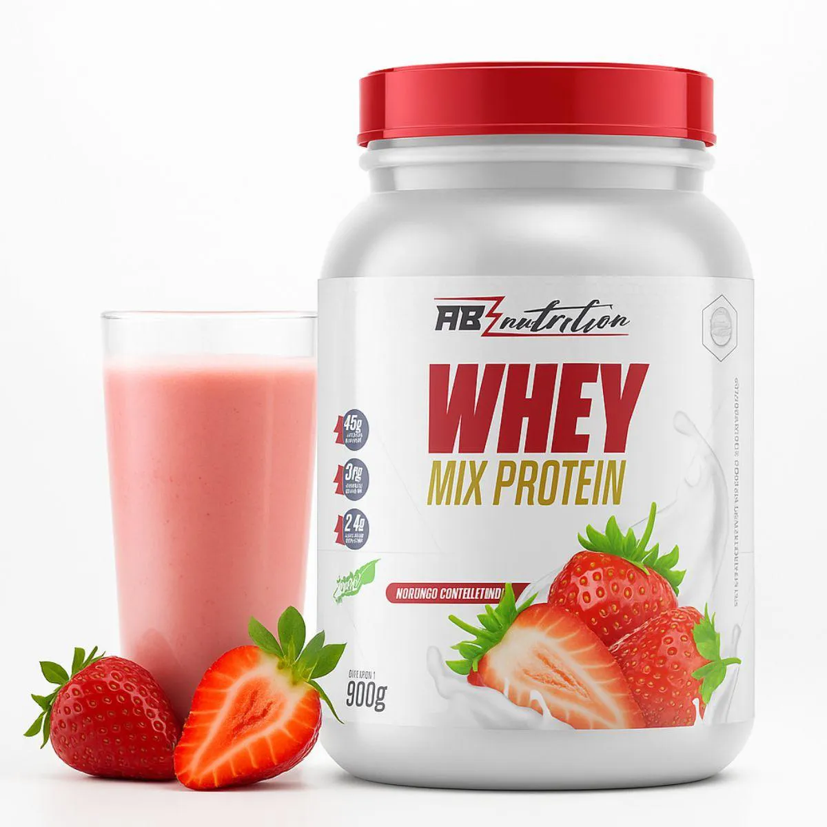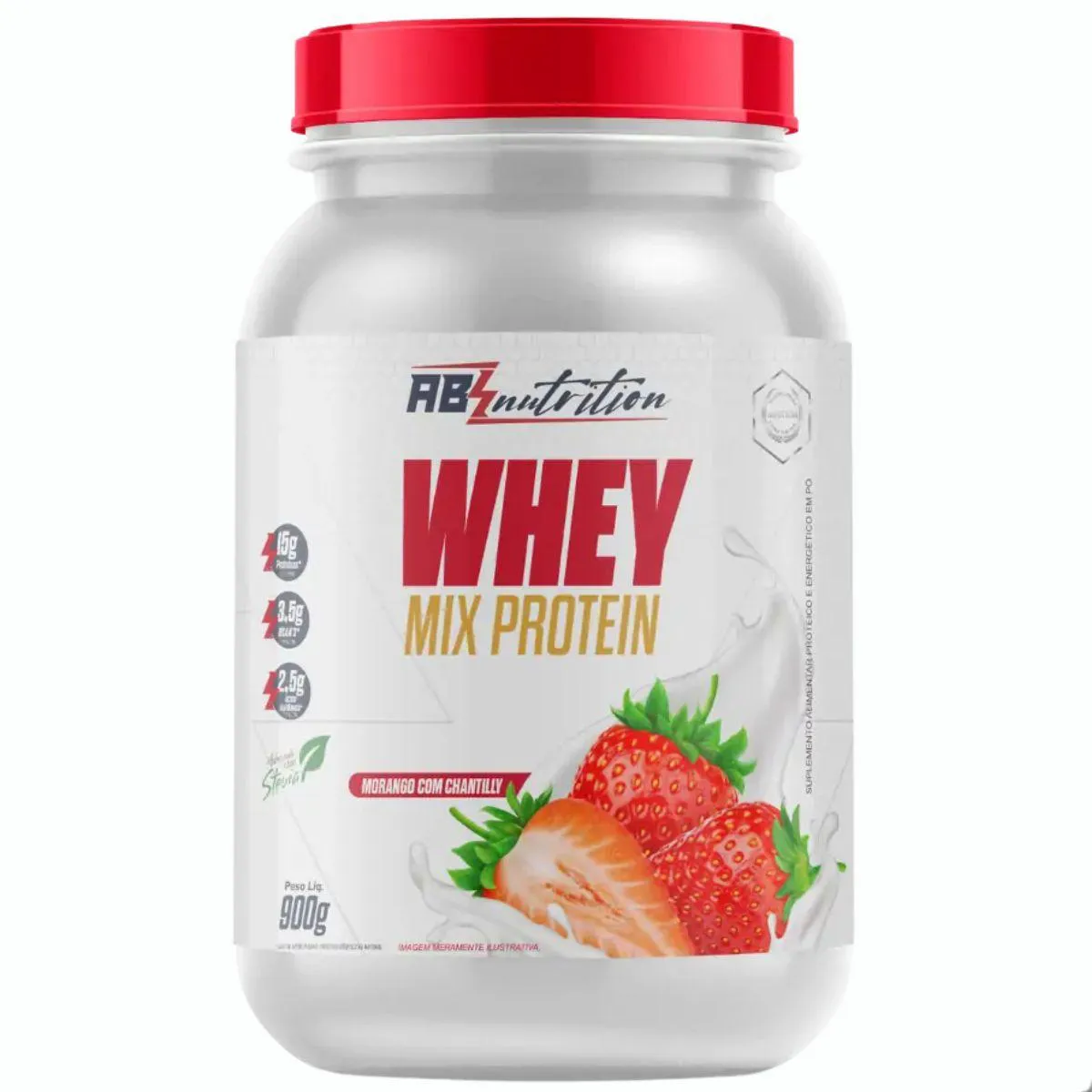 Whey Mix Protein com Stevia Pote 900G Absolut Nutrition Morango COM Chantilly