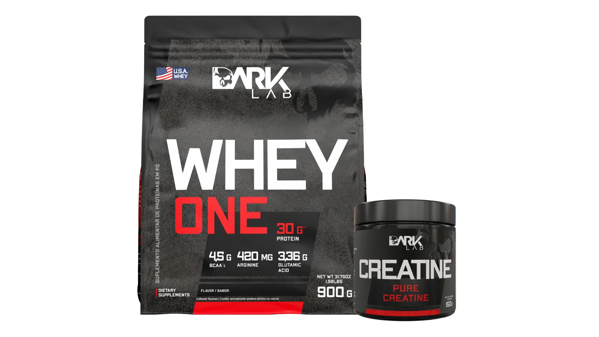 WHEY ONE MORANGO 900G + CREATINA 150G 100% PURA - DARK LAB 900 G