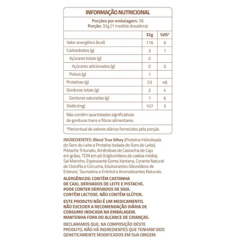 O Whey Protein da True Source é elaborado com um blend de proteína isolada e hidrolisada do soro do leite, é livre de glúten, açúcar e corantes artificiais. Pode ser usado como pré ou pós-treino, e possui sabor irresistível de ice cream pistachio.