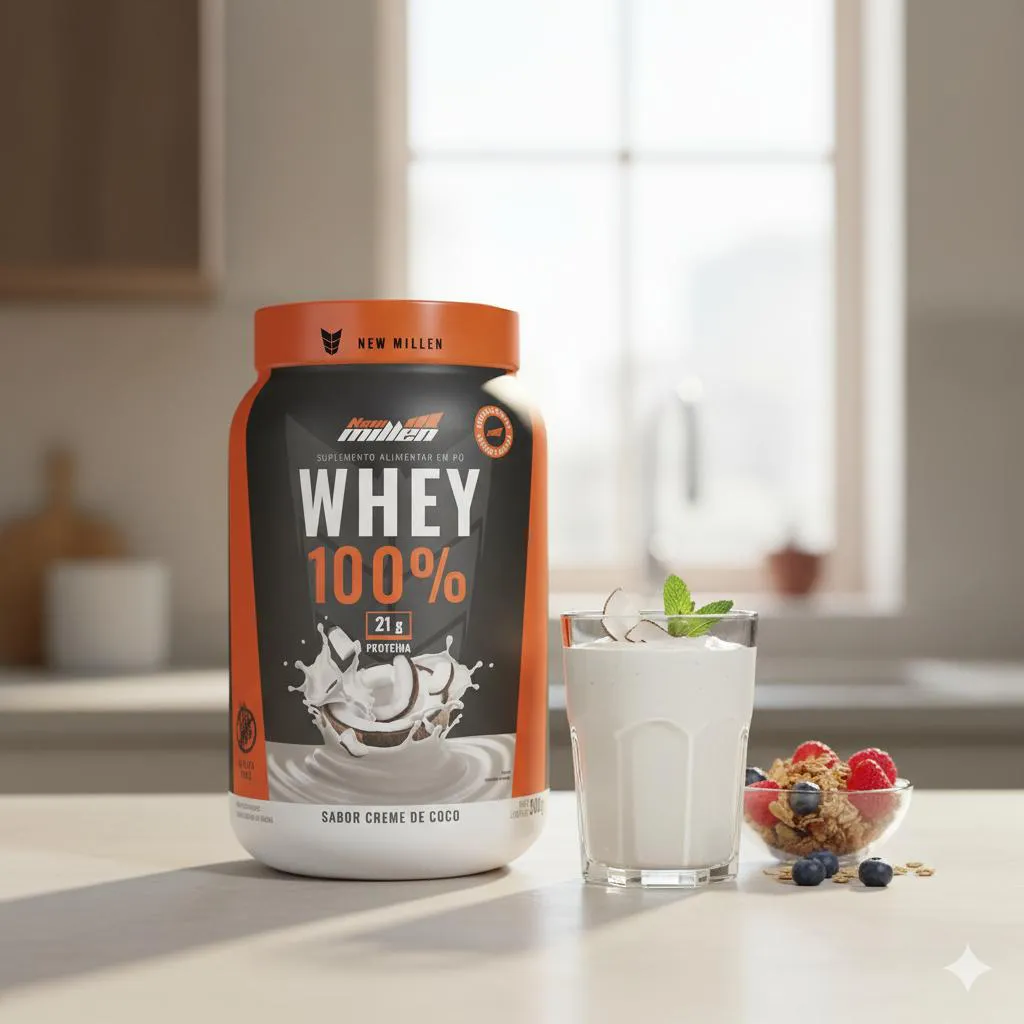 O Whey 100% Pote 900g da New Millen é um suplemento proteico desenvolvido para fornecer proteínas de alta qualidade, auxiliando no ganho de massa muscular magra e na recuperação pós-treino. Formulado com proteína concentrada do soro do leite (WPC), este produto oferece uma fonte rica em aminoácidos essenciais, incluindo BCAA e glutamina, fundamentais para o crescimento e reparo muscular. Com 21g de proteína por porção, o Whey 100% é ideal para atletas e praticantes de atividades físicas que buscam maximizar seus resultados de forma eficiente e saudável. Composição e Ingredientes - Proteína Concentrada do Soro do Leite (WPC)- Não contém glúten.