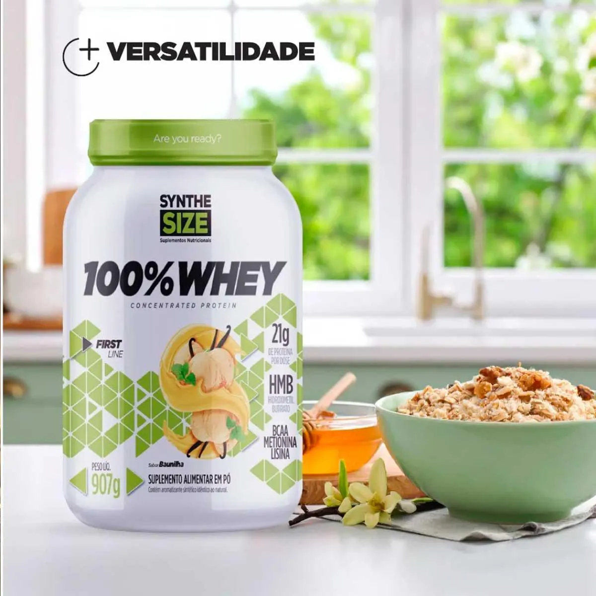Potencialize seus treinos com o 100% Whey da Synthesize, uma proteína de alto desempenho para quem busca massa muscular, definição e recuperação rápida! Com 21g de proteína por dose, rica em BCAA (4,2g) e aminoácidos essenciais, essa fórmula premium garante resultados mais rápidos e seguros. Produzido com proteína concentrada do soro do leite (WPC), tem alta digestibilidade e é perfeito para seu pós-treino ou lanche proteico! Benefícios incríveis: