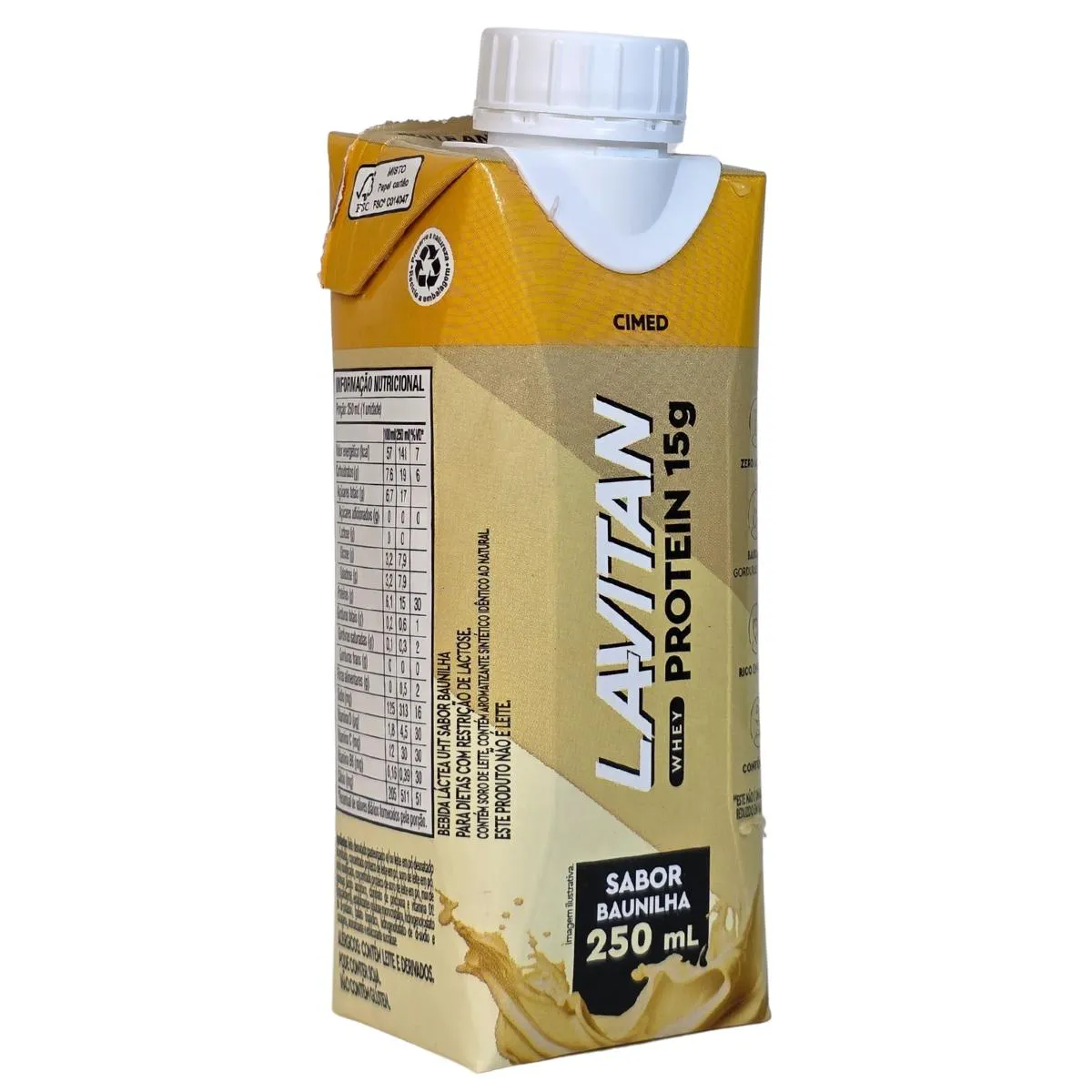 Whey Protein Bebida Láctea Uht 15G de Proteína Sabor Baunilha Lavitan Cimed 250Ml