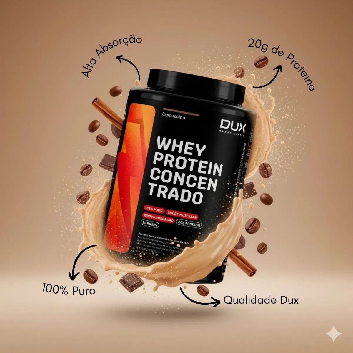 WHEY PROTEIN CONCENTRADO DUX CAPPUCCINO 900G 20G PROTEINA FORÇA ENERGIA Descubra o WHEY PROTEIN CONCENTRADO DUX no delicioso sabor CAPPUCCINO, a PROTEINA de alta qualidade para sua rotina. Com 20G de PROTEINA pura por dose, este pote de 900G rende 30 doses de FORÇA e ALTA ABSORÇÃO. É a escolha perfeita para quem busca ALTA PERFORMACE com o toque estimulante e premium do café. O WHEY CONCENTRADO DUX: SABOR GOURMET E PUREZA O Whey Protein Concentrado DUX sabor CAPPUCCINO oferece um perfil nutricional completo e superior, sendo um produto de marca reconhecida pela qualidade: 20G de PROTEINA PURA: Alta qualidade extraída diretamente do soro do leite, sem blends ou adição de outras proteínas de menor valor. SABOR DIFERENCIADO: O CAPPUCCINO é um blend especial que proporciona uma experiência de sabor aromático, ideal para ser consumido como um shake quente ou frio. ALTA ABSORÇÃO: Sua fórmula garante que o corpo absorva os nutrientes de forma eficaz, fornecendo suporte para o ganho de MASSA MUSCULAR. Perfil Completo de Aminoácidos: Inclui aminoácidos essenciais, cruciais para a construção do MUSCULO e a RECUPERAÇÃO rápida. IDEAL PARA QUEM BUSCA RESULTADOS E PERFORMACE PARA O TREINO Este SUPLEMENTO é indicado para atletas, pessoas ativas e entusiastas do fitness que desejam otimizar sua PERFORMACE PARA O TREINO. É perfeito para quem busca: FORÇA MUSCULAR: O aporte proteico CONCENTRADO e consistente contribui para o ganho e manutenção da MASSA MUSCULAR. RECUPERAÇÃO EFICAZ: Garante um descanso pós-treino mais produtivo, preparando o MUSCULO para o próximo desafio. ENERGIA EQUILIBRADA: O sabor CAPPUCCINO fornece suporte energético, ideal para o pré-treino ou ao acordar. COMO CONSUMIR O WHEY PROTEIN CONCENTRADO DUX CAPPUCCINO? O consumo pode ser feito diariamente, conforme seus objetivos. É FÁCIL DE PREPARAR E CONSUMIR, dissolvendo rapidamente em líquidos. SUGESTÃO DE USO: Dilua uma medida (dose) de Whey Protein Concentrado em 250 - 350ml de água (quente ou fria) ou leite. MELHORES MOMENTOS PARA CONSUMO: PRÉ-TREINO: Para garantir ENERGIA e foco. PÓS-TREINO: Para RECUPERAÇÃO muscular imediata. CAFÉ DA MANHÃ: Para começar o dia com PROTEINA e sabor de café. CARACTERÍSTICAS TÉCNICAS Tipo de Produto: WHEY PROTEIN CONCENTRADO (SUPLEMENTO) Conteúdo: POTE 900G Rende: 30 DOSES (Aproximadamente) Proteína por Dose: 20G Sabor: CAPPUCCINO Diferenciais: Blend puro, sabor gourmet diferenciado. ESTOQUE LIMITADO! Garanta o seu POTE de WHEY DUX CONCENTRADO CAPPUCCINO agora e sinta a diferença na sua FORÇA e ENERGIA. Aproveite o preço especial e tenha 30 dias de PERFORMACE! Aviso legal Este produto é um SUPLEMENTO dietético, não um medicamento. Suplementa dietas insuficientes. Consulte o seu médico e/ou farmacêutico.