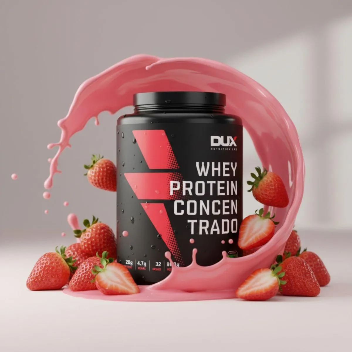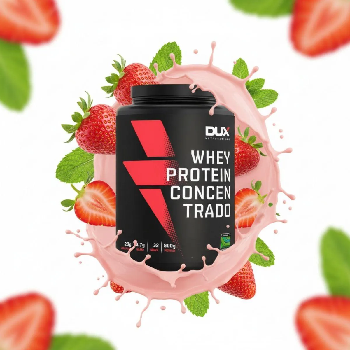 Whey Protein Concentrado Pote 900G Dux Nutrition Morango
