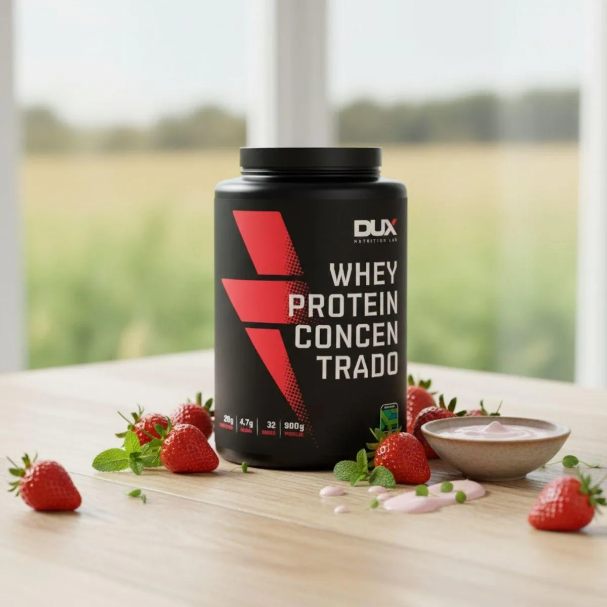 O Whey Protein Concentrado 900 g da Dux contém proteína do soro do leite em sua forma mais próxima do natural, preservando peptídeos bioativos. Cada dose de 30 g fornece em média 20 g de proteína com pequenas quantidades de carboidratos e gorduras, tornando‑o uma opção equilibrada para atletas e pessoas ativas.