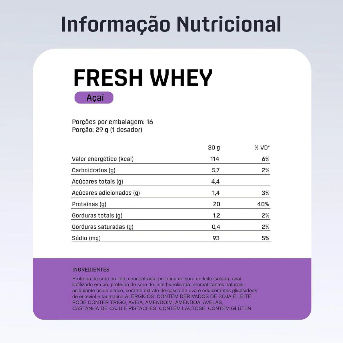 Whey Protein Fresh 3W 100% Natural 900G Dux Nutrition Açaí