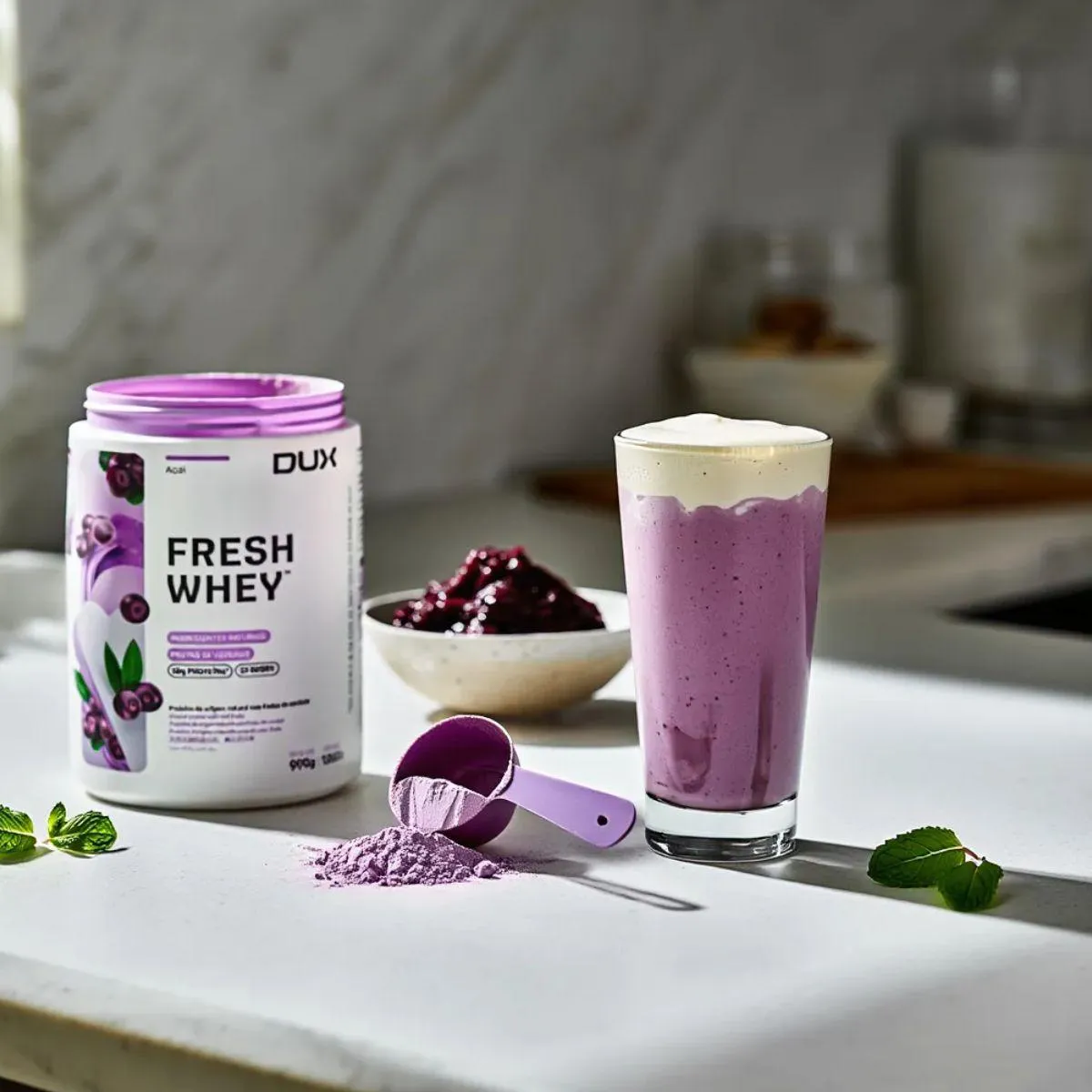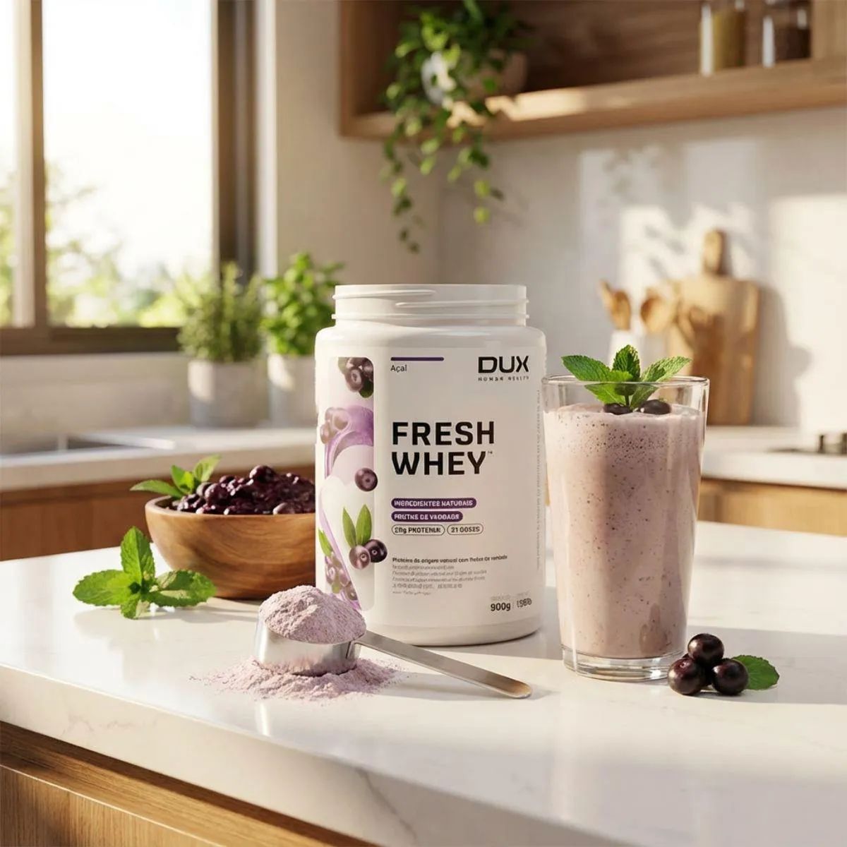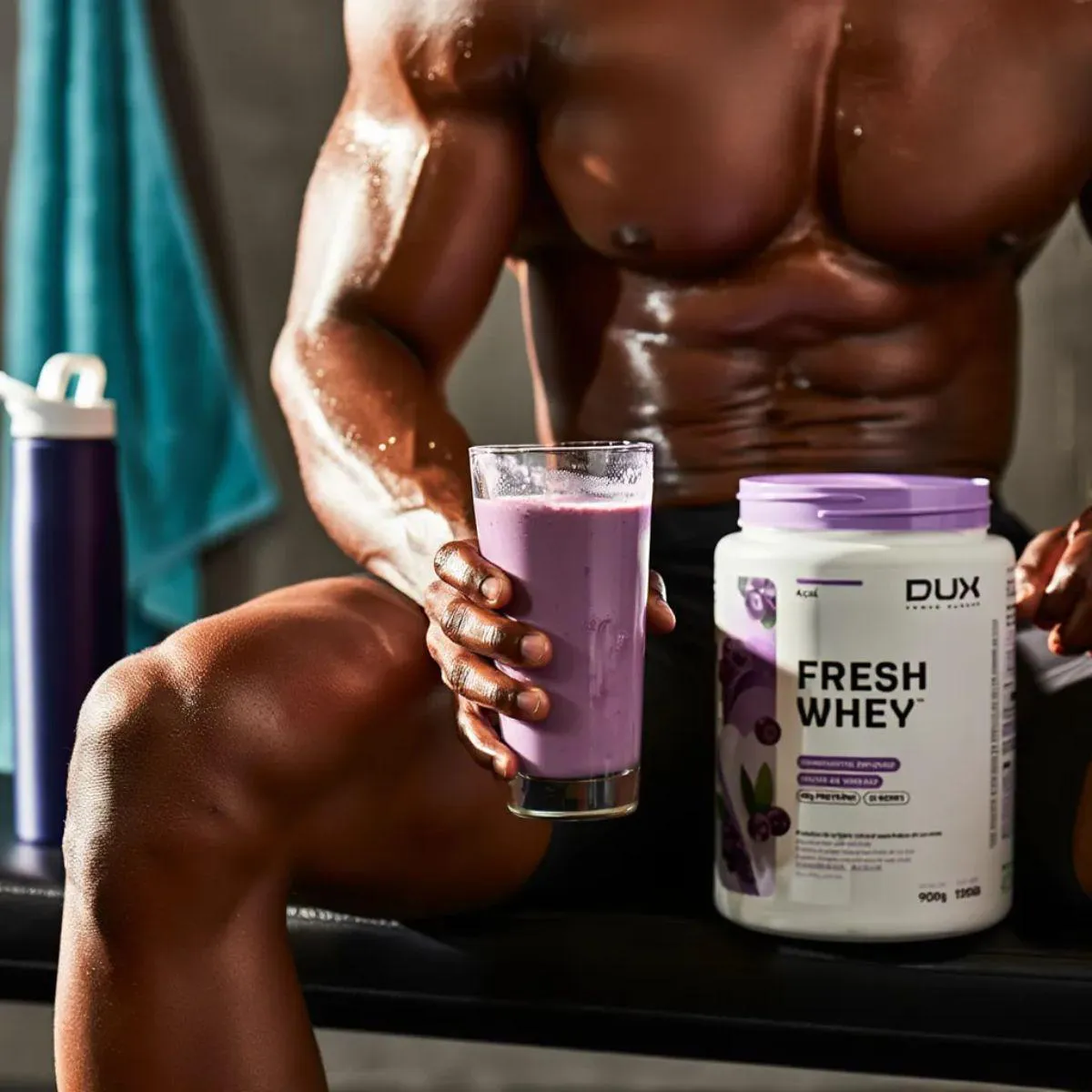 O Whey Protein Fresh 3W da Dux combina três fontes de proteína do soro do leite — concentrada, isolada e hidrolisada — para proporcionar um perfil completo de aminoácidos com digestão em diferentes velocidades. A linha Fresh utiliza ingredientes naturais, incluindo frutas e oleaginosas, e fornece cerca de 20 g de proteína por dose, com baixo teor de gordura e carboidratos.