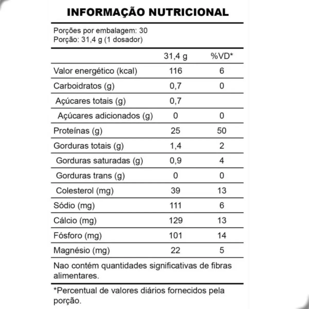 - Contém BCAA e glutamina naturalmente presentes, auxiliando na recuperação muscular.