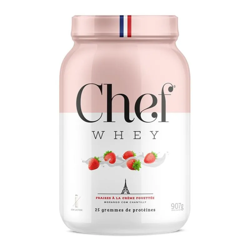 Whey Protein Gourmet Zero Lactose 907G - Morango com Chantilly + Coqueteleira - Chef Whey