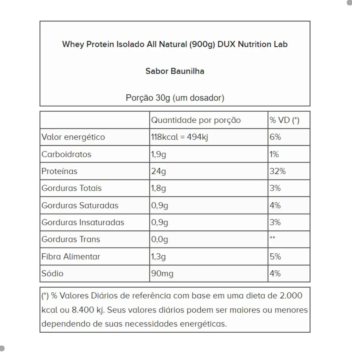 Whey Protein Isolado All Natural 900G Dux Nutrition Baunilha