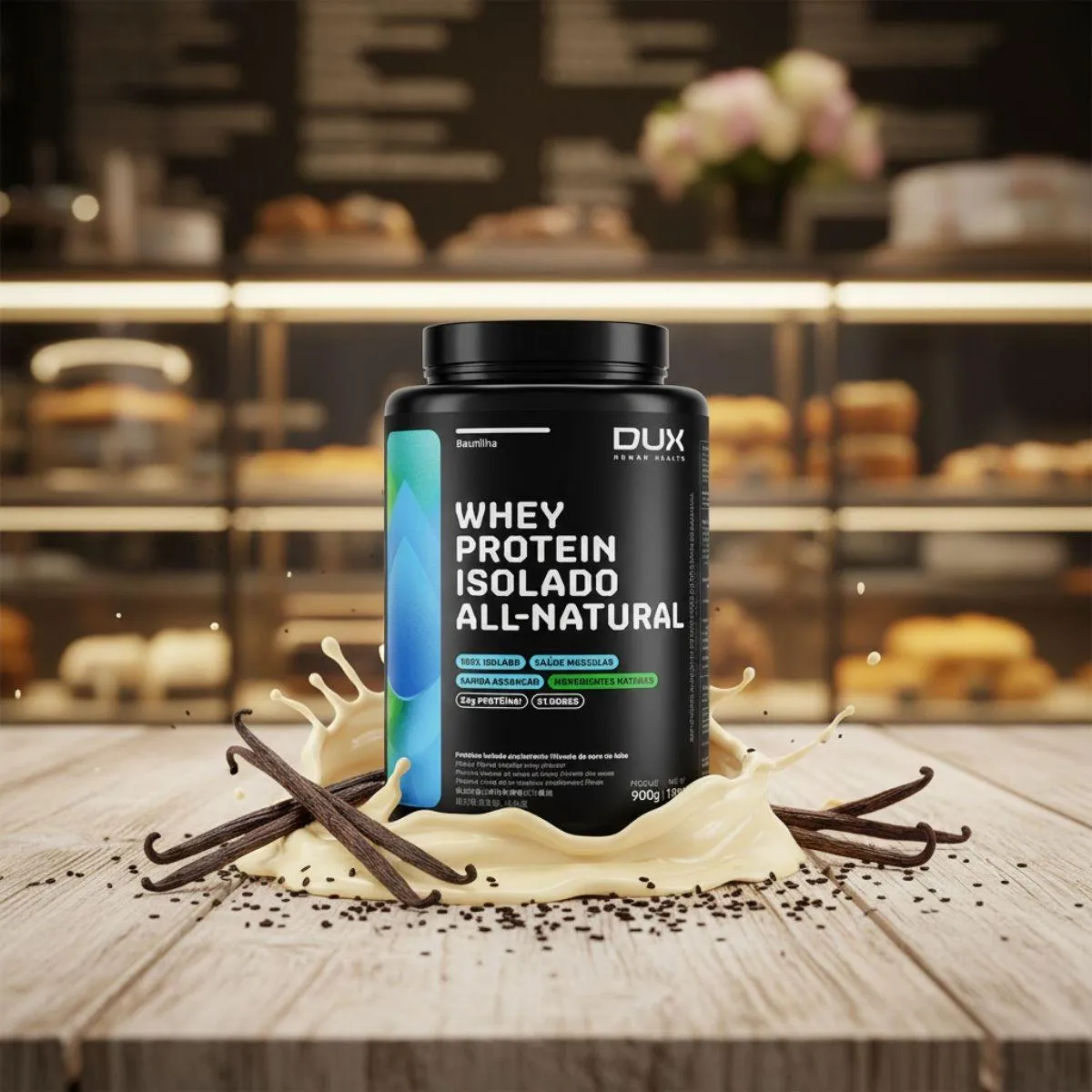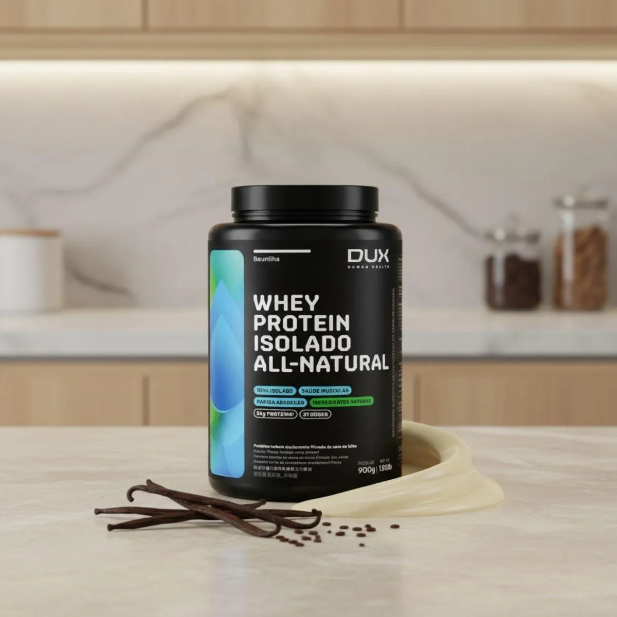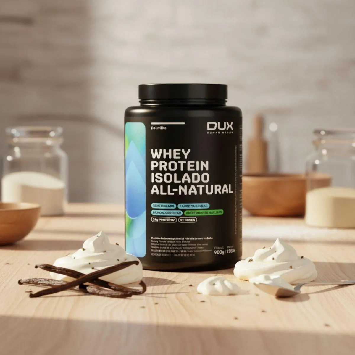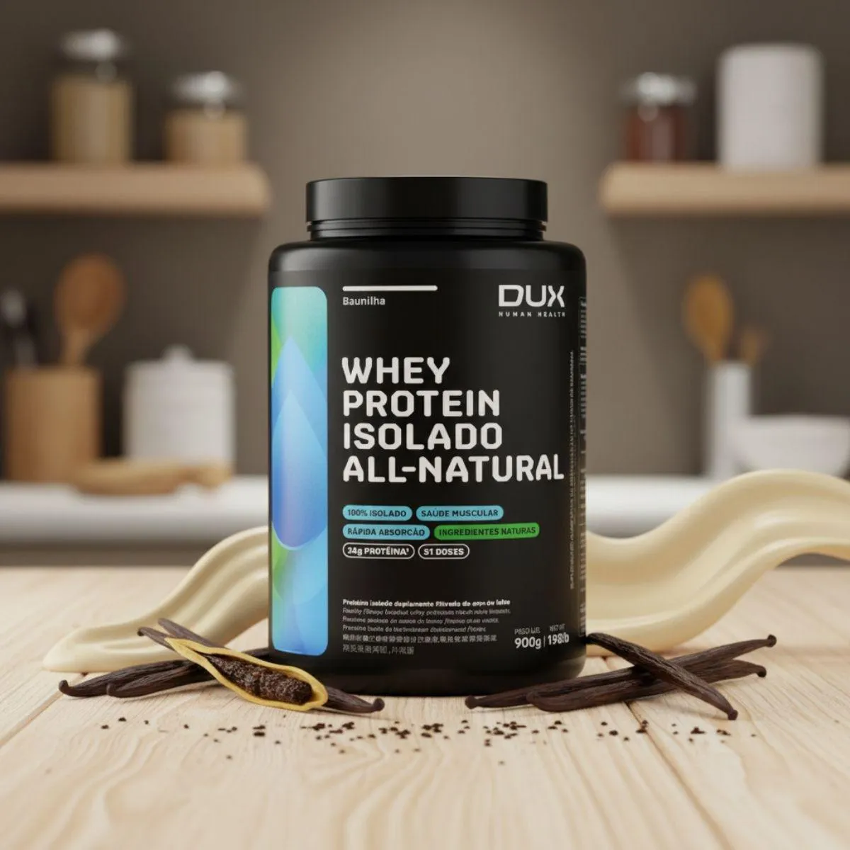 O Whey Protein Isolado All Natural da Dux foi desenvolvido para quem procura a pureza máxima das proteínas do soro do leite. A matéria‑prima passa por dupla filtração para remover gorduras e lactose, entregando cerca de 24 g de proteína por dose de 30 g com pouquíssimos carboidratos. A fórmula não utiliza aromas artificiais, adoçantes sintéticos nem açúcar, mantendo um perfil limpo e transparente.