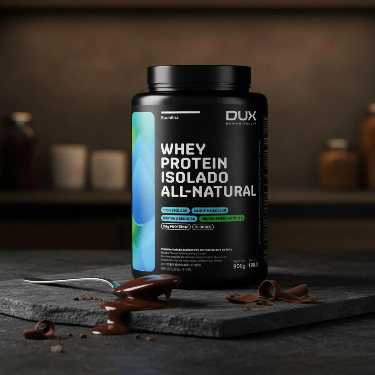 Whey Protein Isolado All Natural 900G Dux Nutrition Chocolate