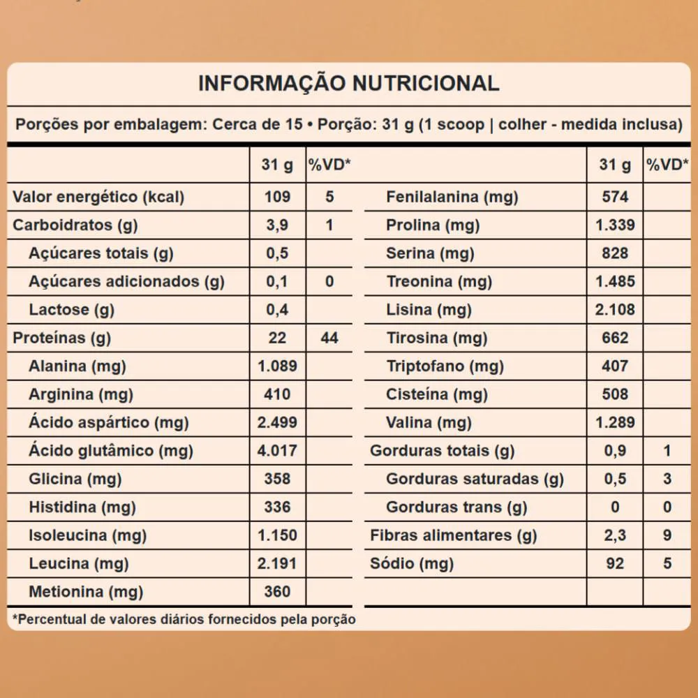 _x000D_ Whey protein isolado: trata-se da proteína do soro do leite, em que passou por um processo de filtragem para que reste apenas proteína pura, livre de caseína e com uma quantidade ínfima de lactose. _x000D_ adoçantes: Adoçado com um blend de adoçantes naturais - stevia e o eritritol._x000D_Sugestão de consumo: