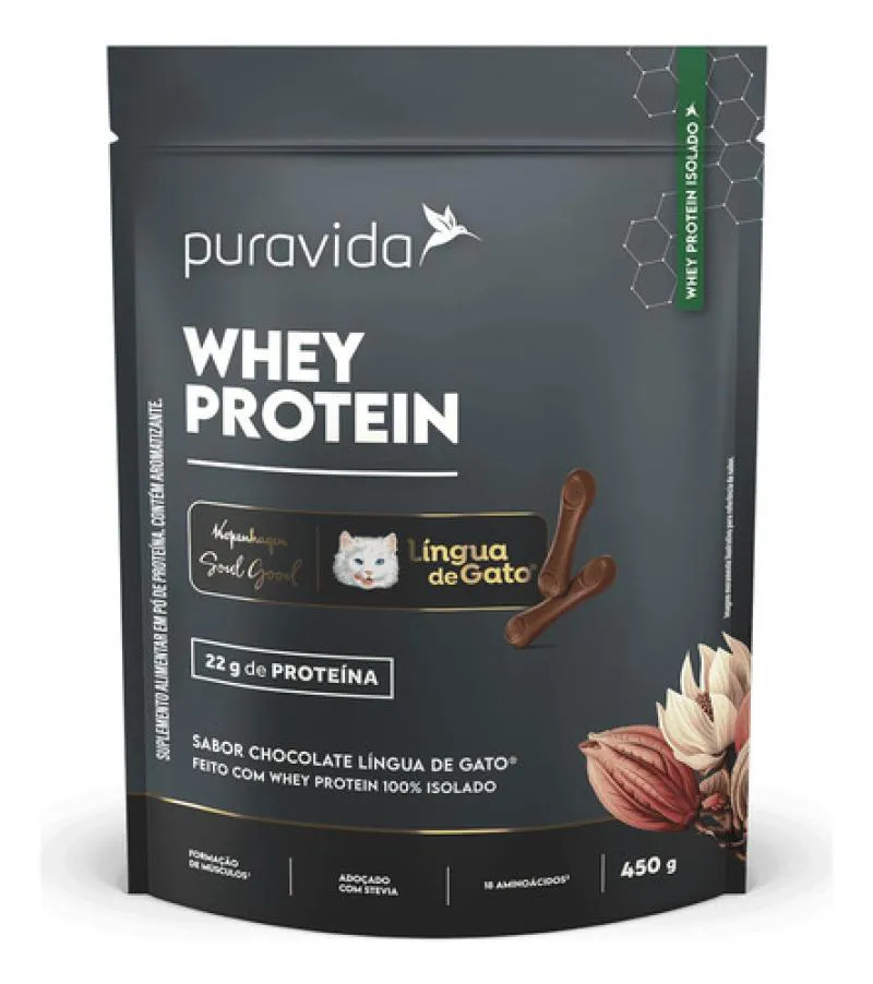 Whey Protein Isolado Lingua de Gato 450G - Puravida