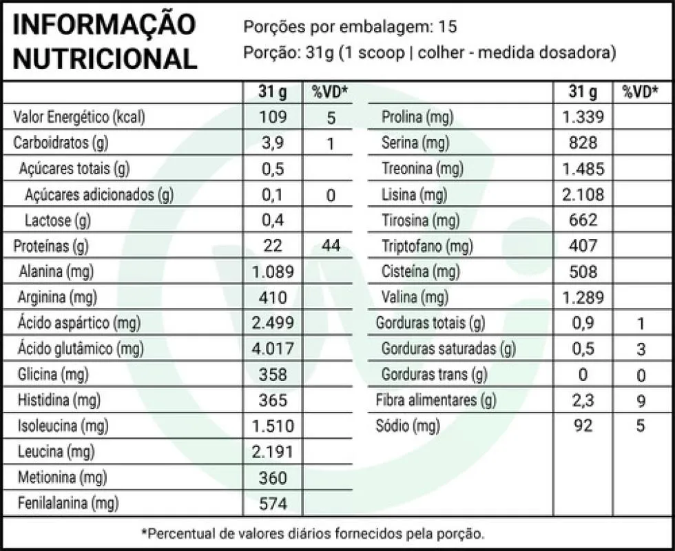Proteína isolada do soro do leite, coadjuvante para construção e recuperação muscular — 22 g de proteína por porção de 31 g (1 scoop)  BCAAs: 4,8 g por porção, auxiliando na preservação da massa magra adoçantes naturais: estévia, eritritol e taumatina — sem adição de açúcar Livre de glúten e com baixo teor de carboidratos e gorduras — ótima opção para dietas restritivas Ingredientes adicionais: cacau, aromatizantes naturais, lecitina, goma xantana — sem corantes ou conservantes artificiais Alergênicos: contém derivados do leite e traços de noz; não indicado para veganos