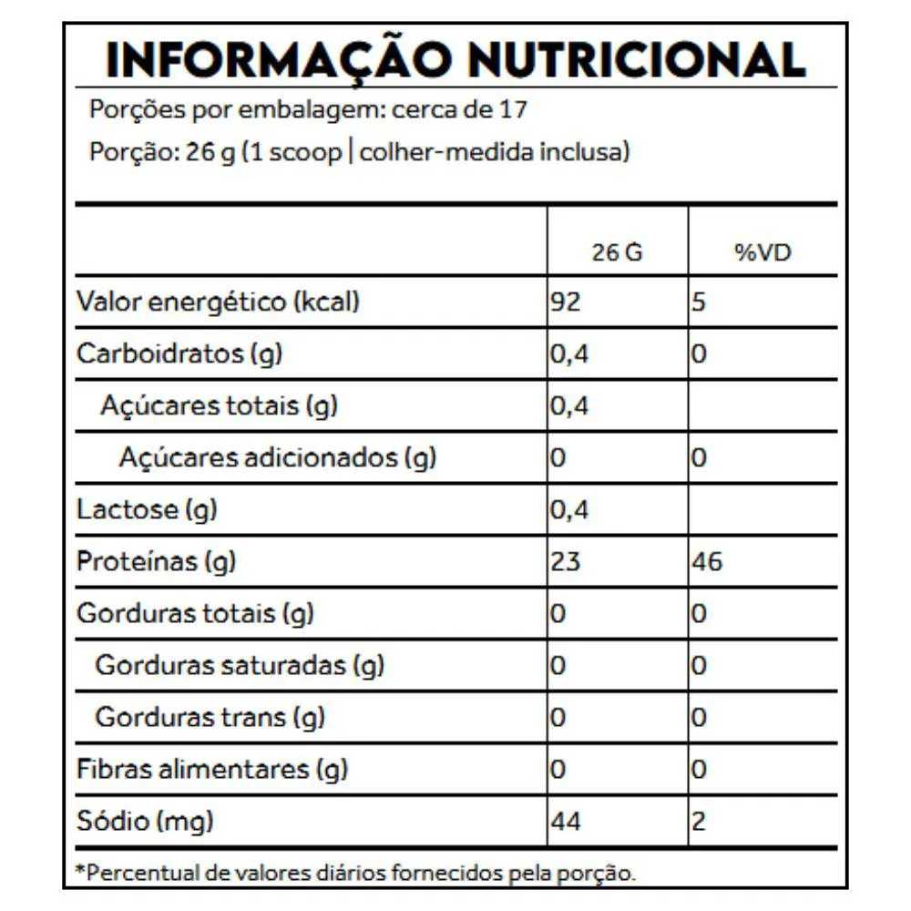 - Isolado e purificado: obtido por tecnologia avançada de filtragem, que preserva os aminoácidos e elimina componentes indesejáveis.