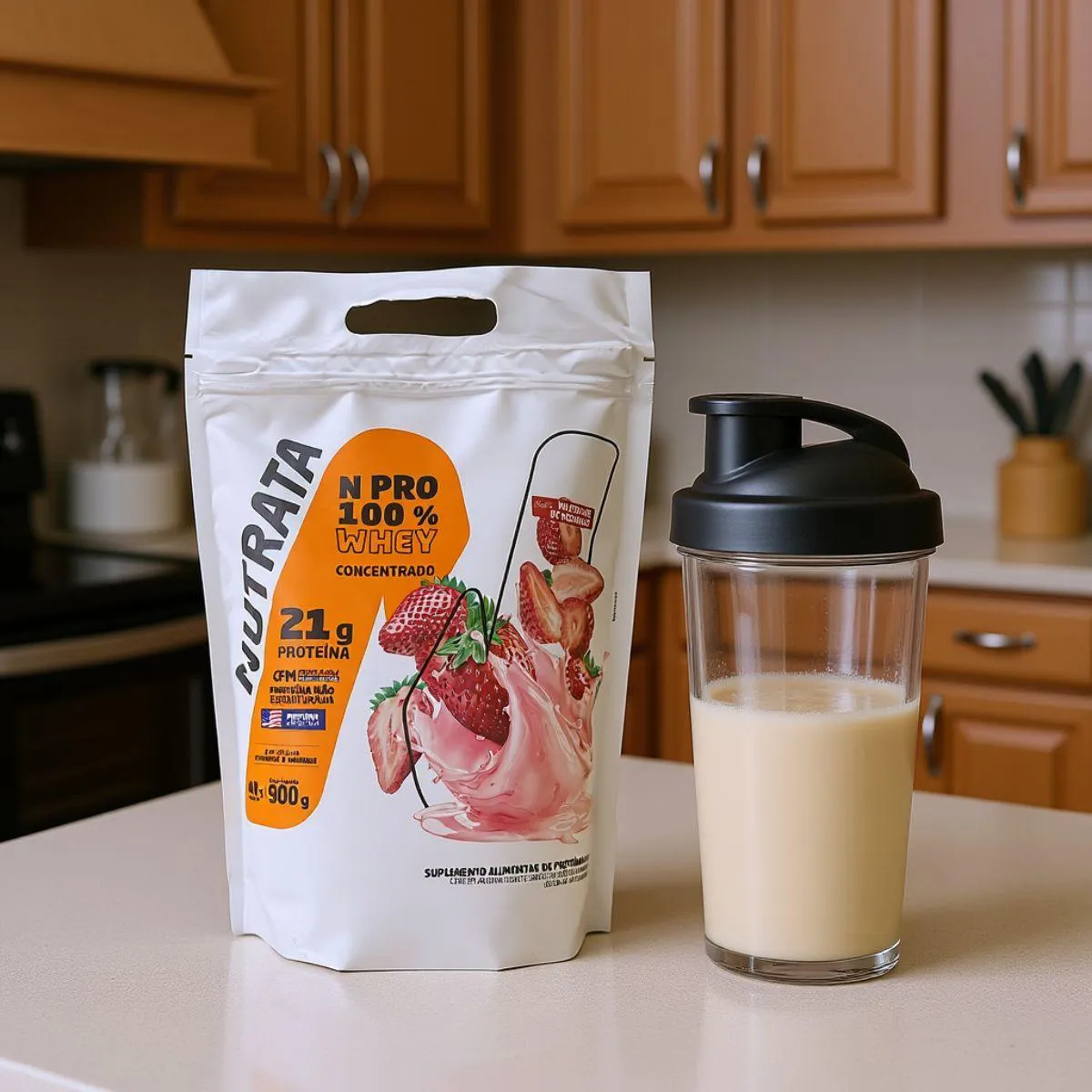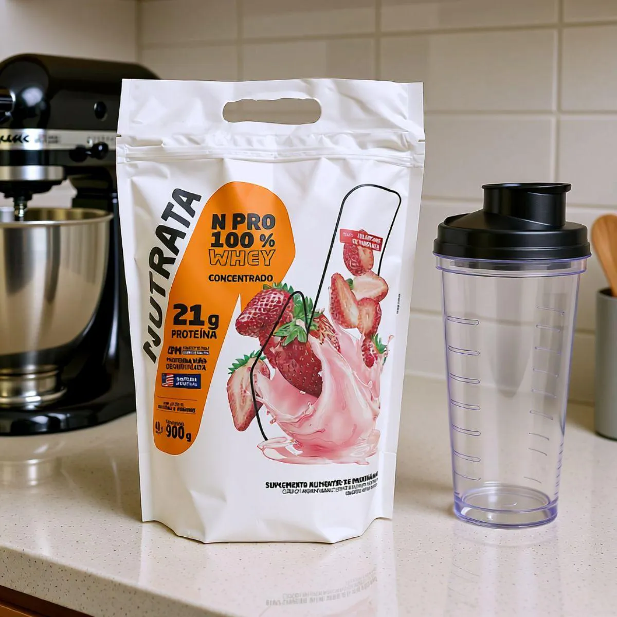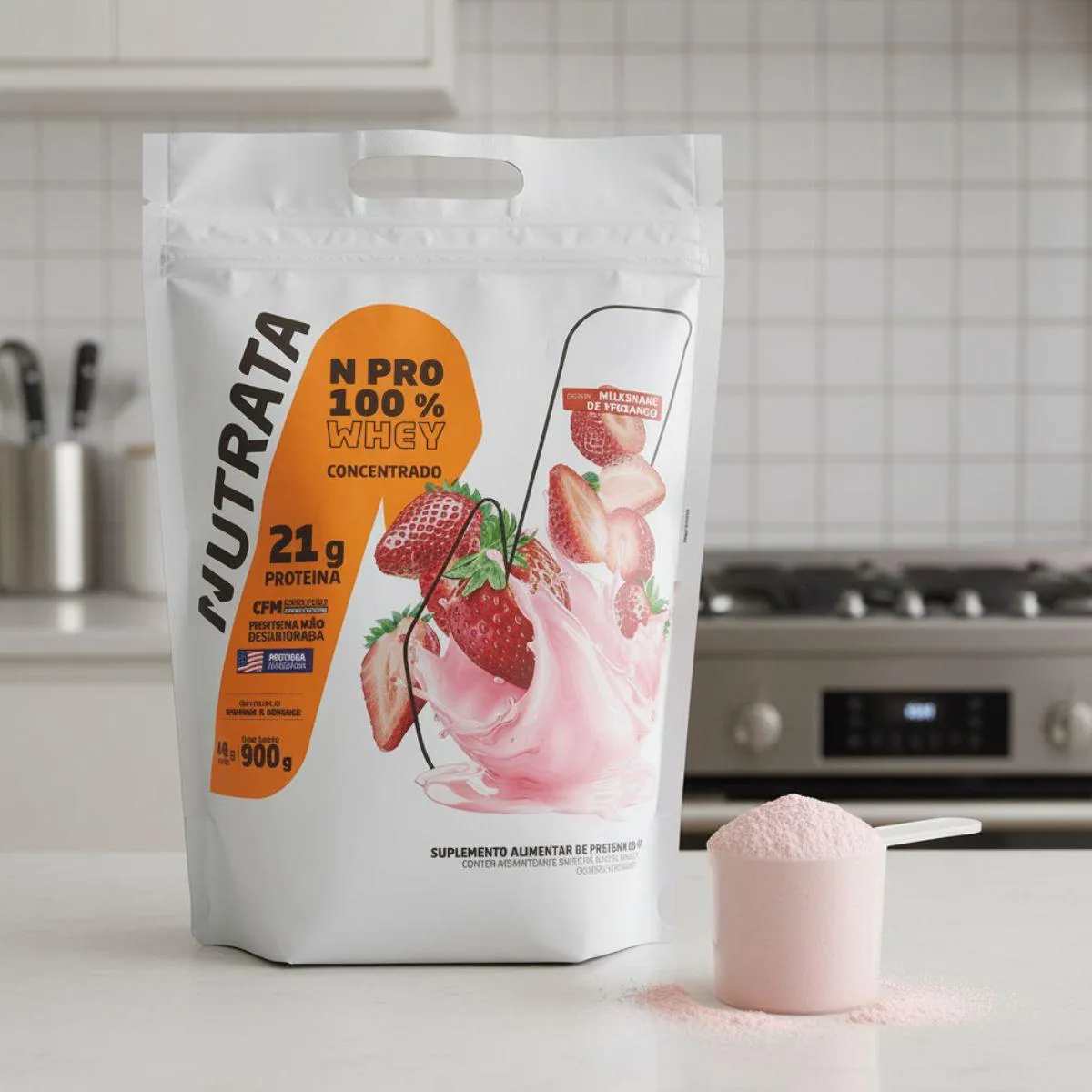 Whey Protein N Pro 100% Concentrado Refil 900G Nutrata Milkshake DE Morango