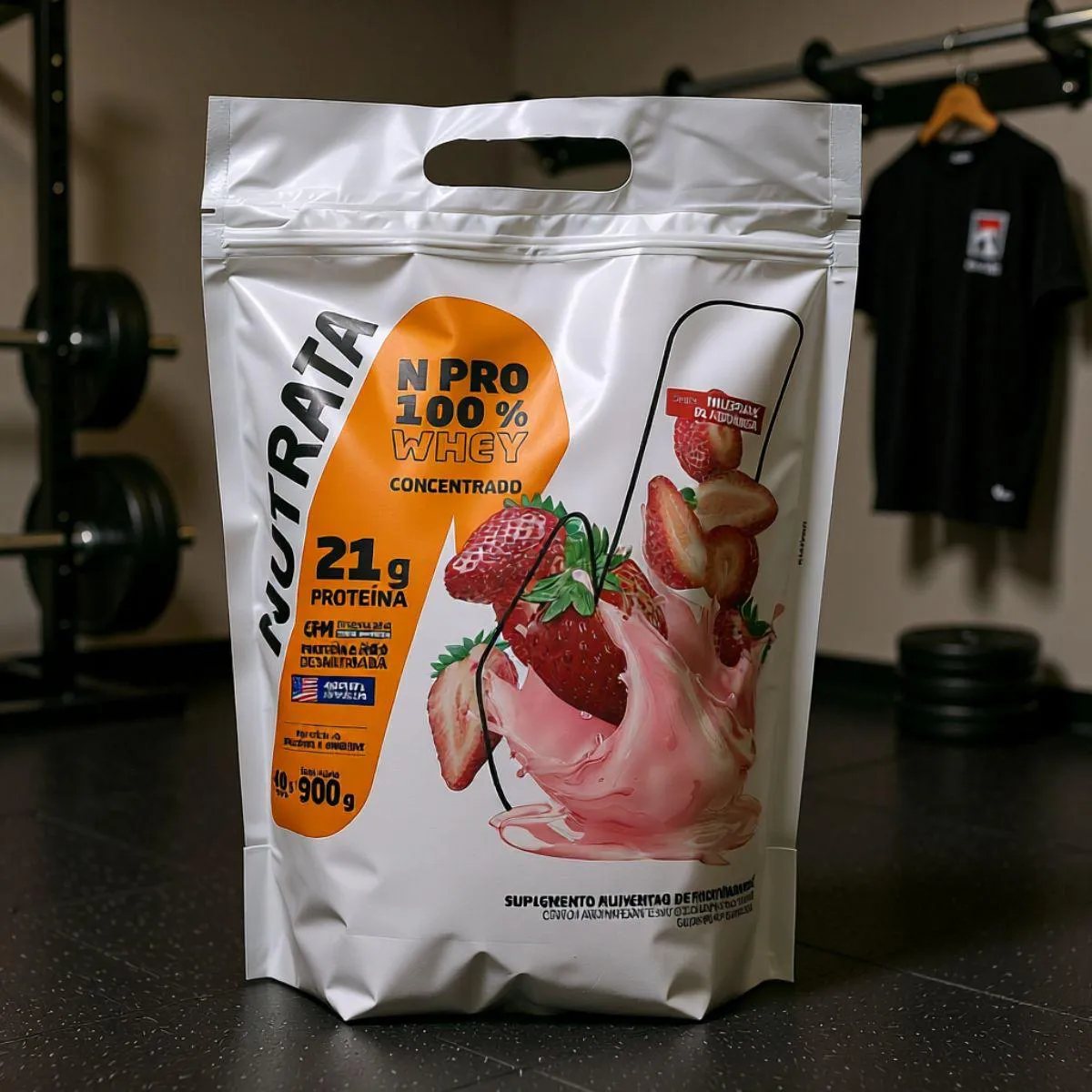 Whey Protein N Pro 100% Concentrado Refil 900g Nutrata whey protein N Pro concentrado em refil de 900 g, fornecendo proteína de alto valor biológico.