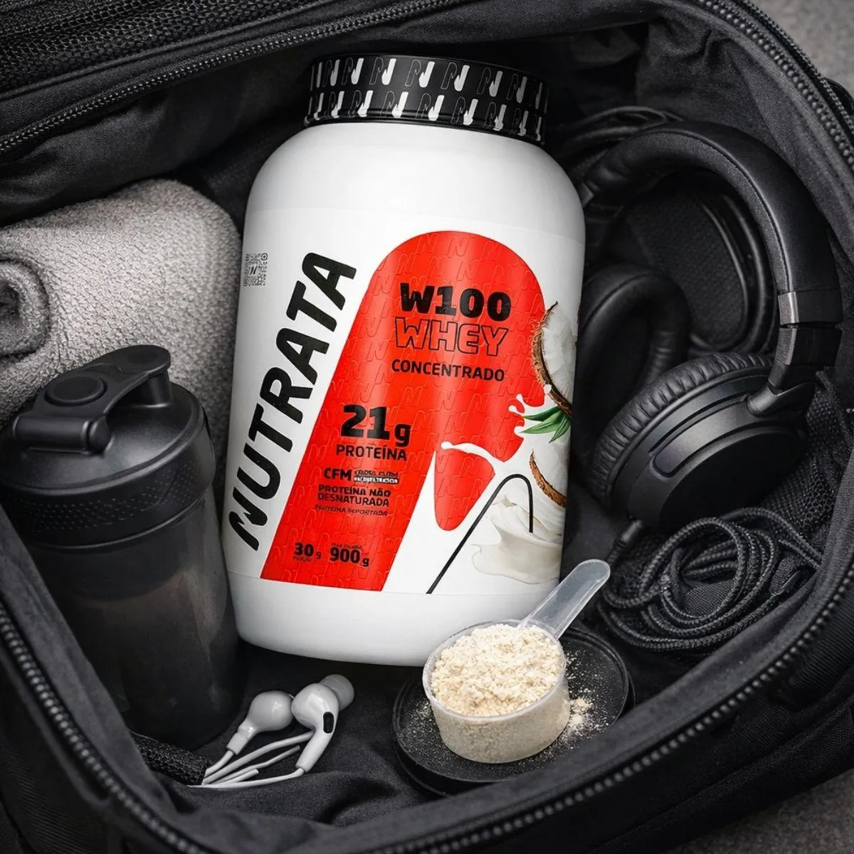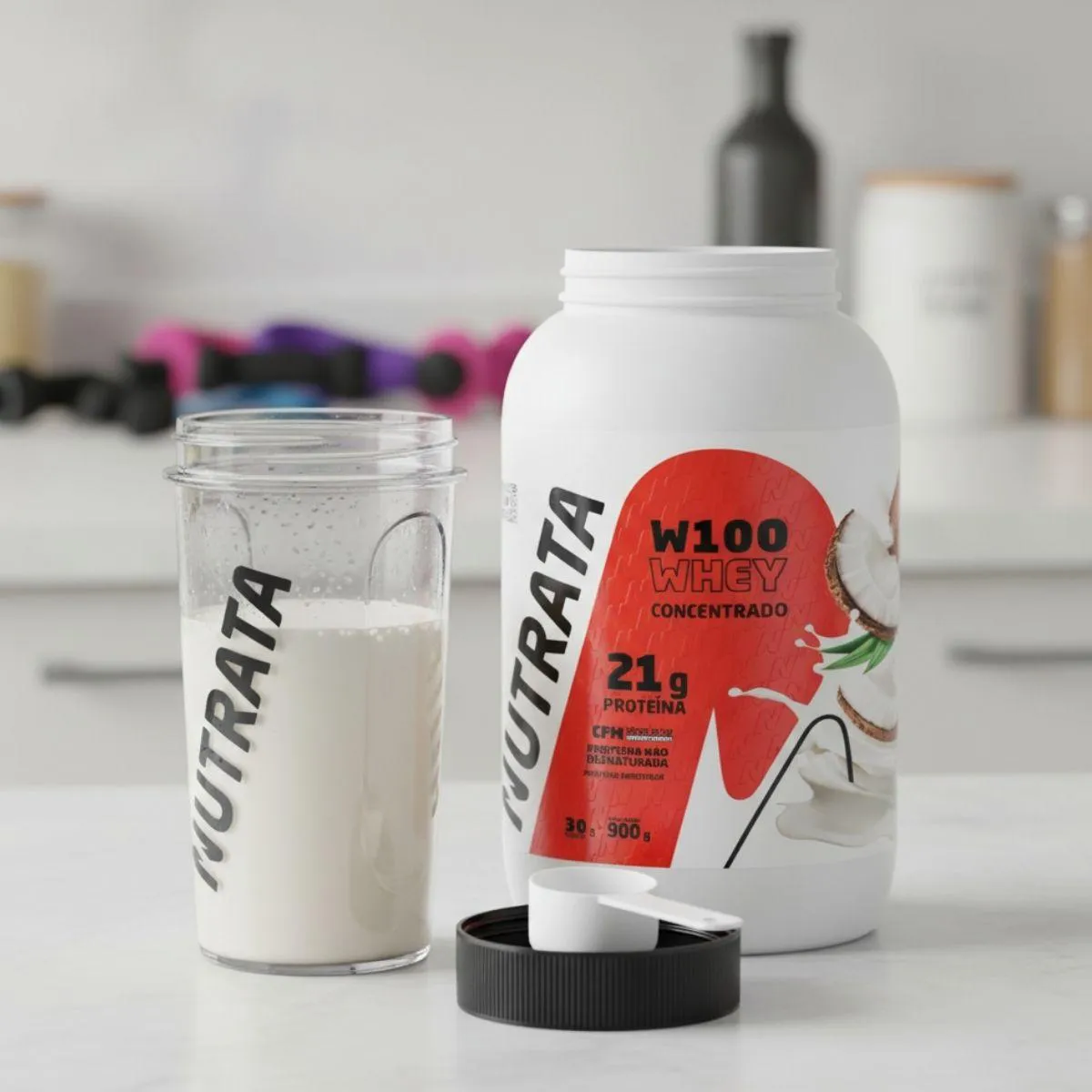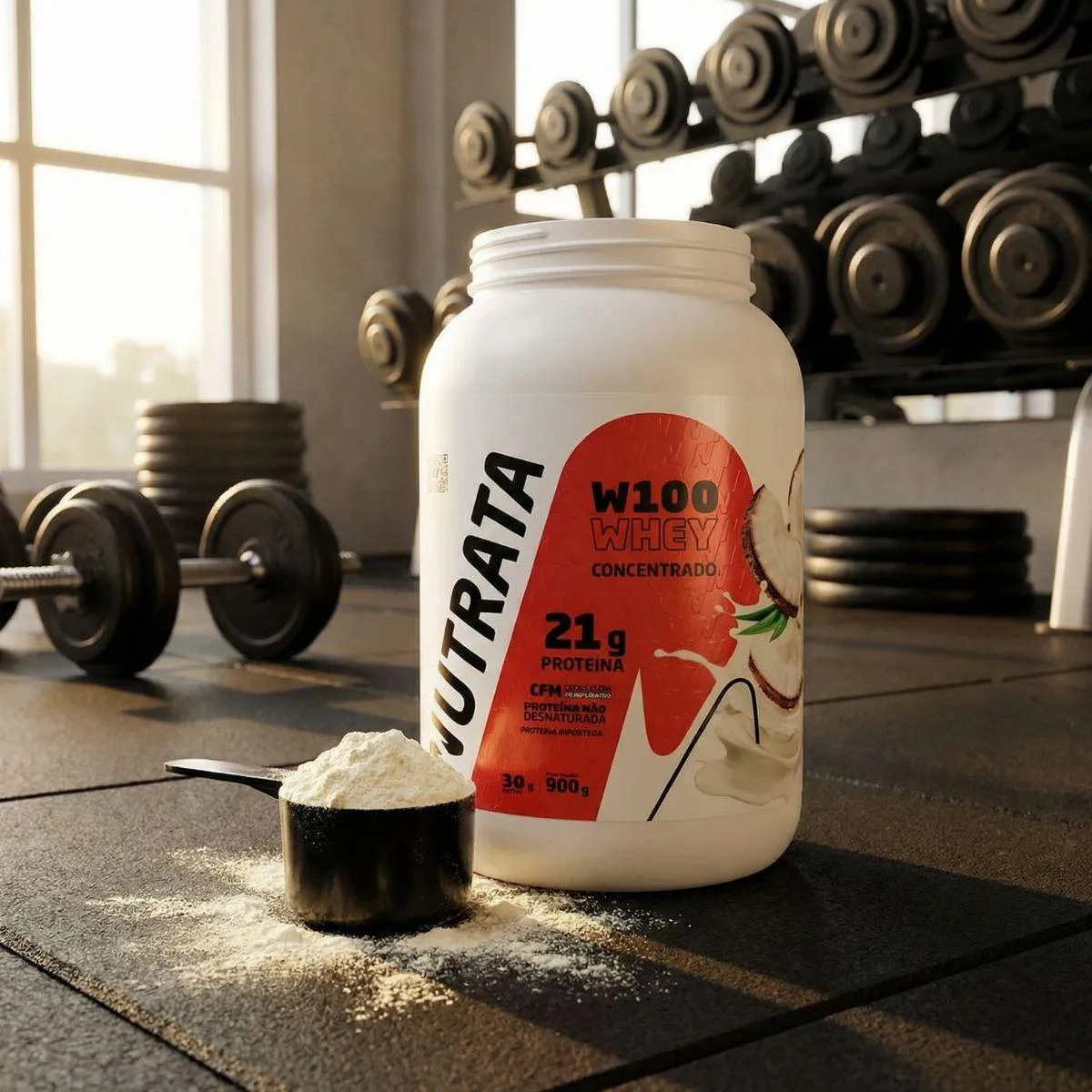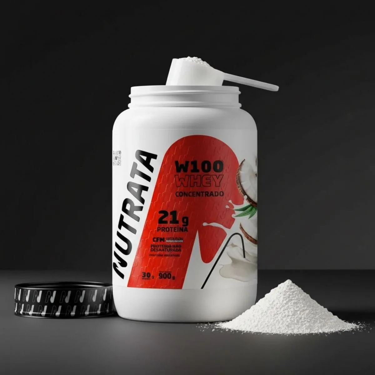 Whey Protein W100 Concentrado 900g Nutrata é um suplemento proteico em pó voltado para atletas e entusiastas, fornecendo uma fonte de proteína de alta qualidade por dose.