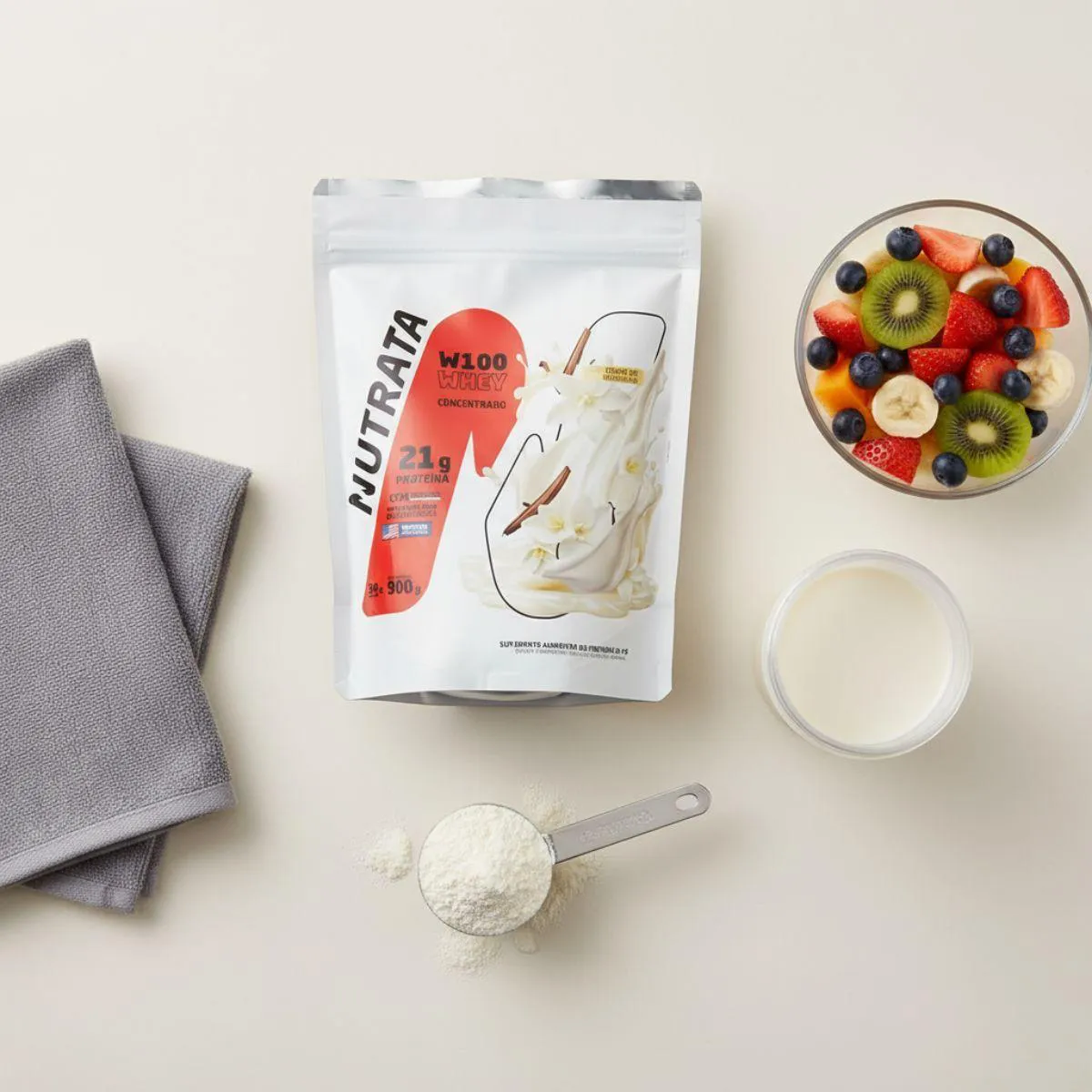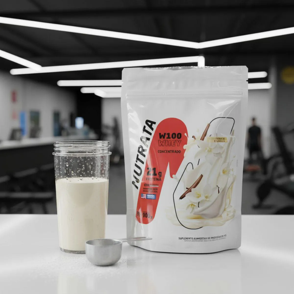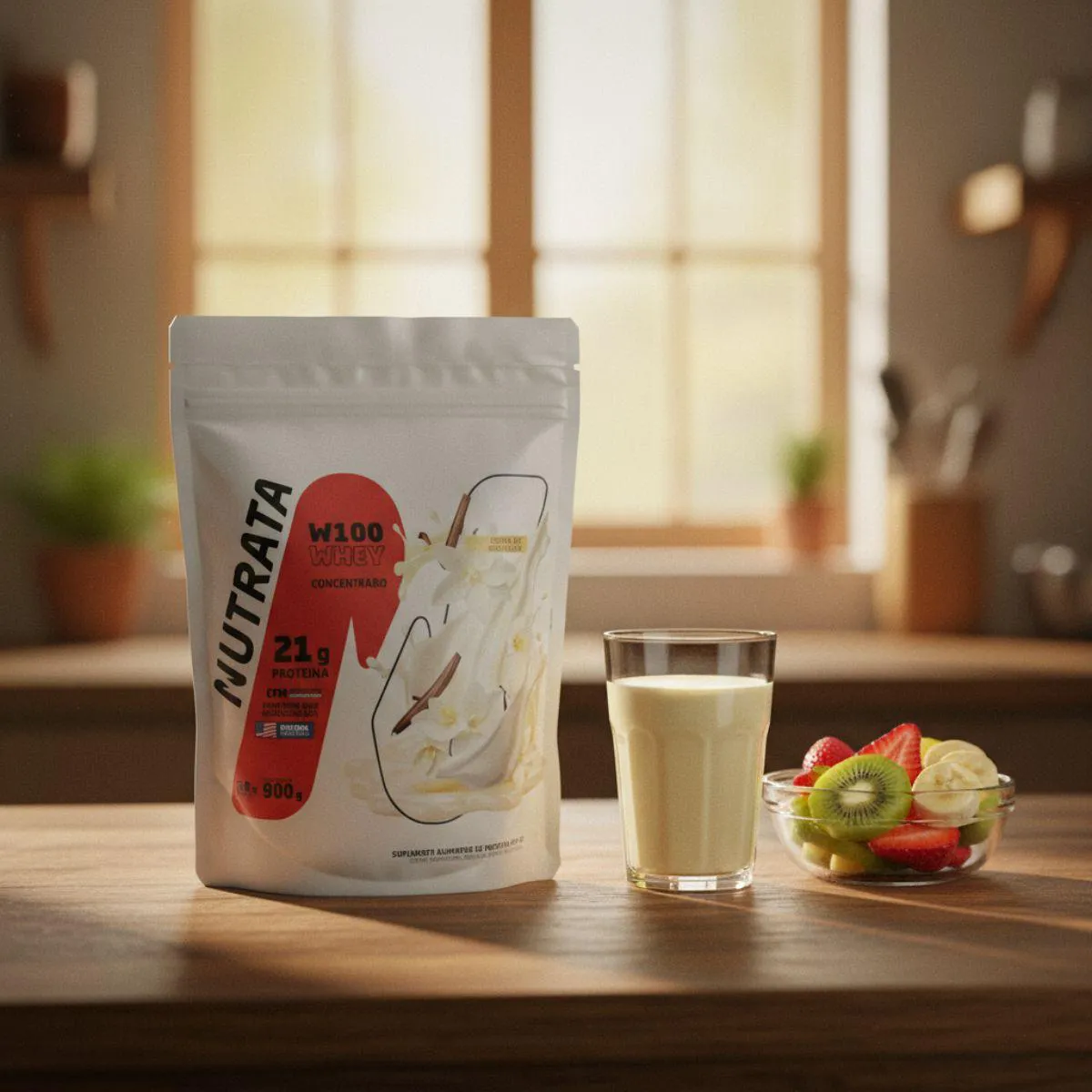 Whey Protein W100 Concentrado Refil 900g Nutrata é um suplemento proteico em pó voltado para atletas e entusiastas, fornecendo uma fonte de proteína de alta qualidade por dose.