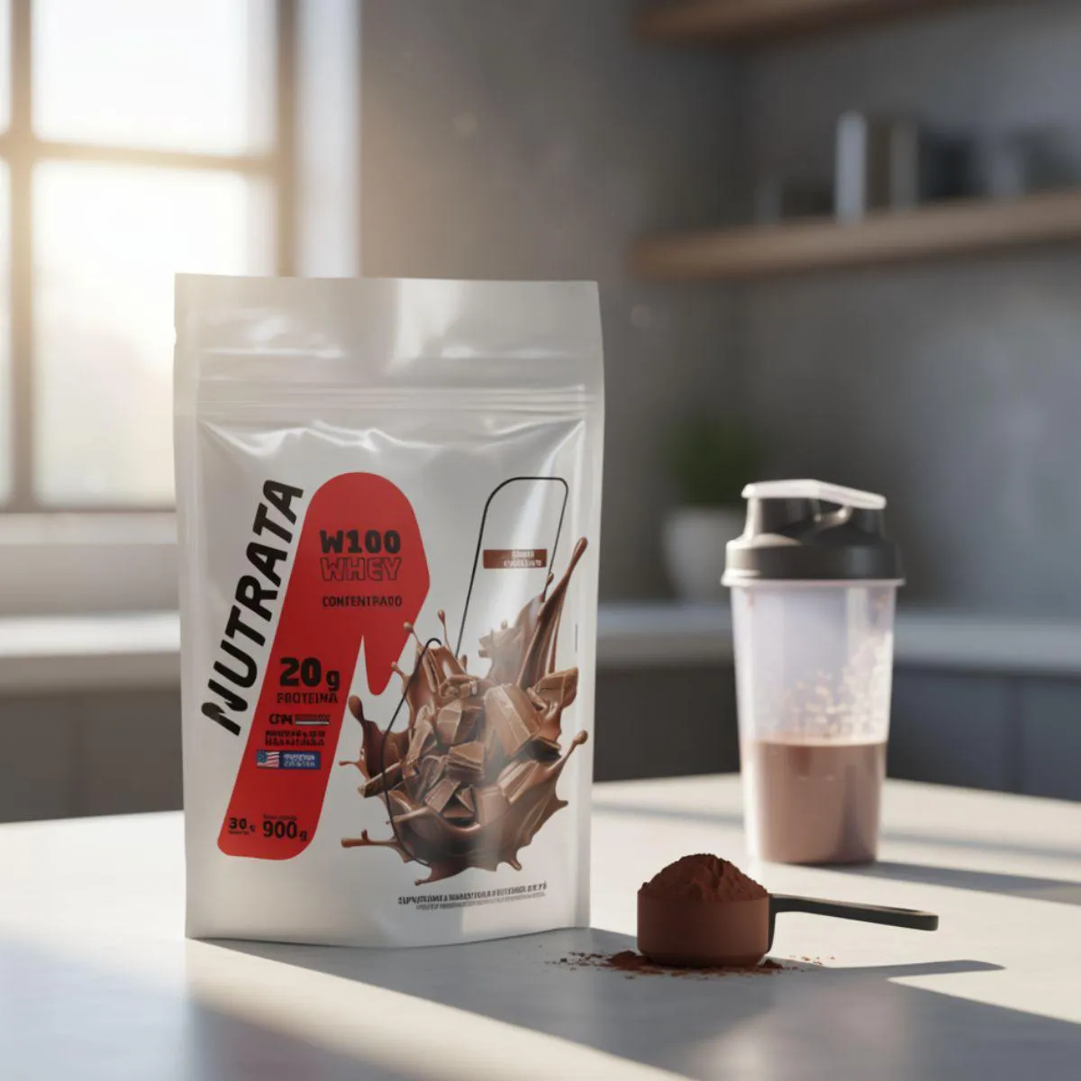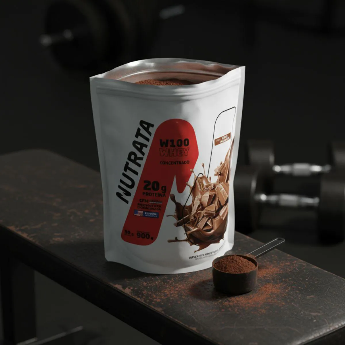 Whey Protein W100 Concentrado Refil 900g Nutrata é um suplemento proteico em pó voltado para atletas e entusiastas, fornecendo uma fonte de proteína de alta qualidade por dose.