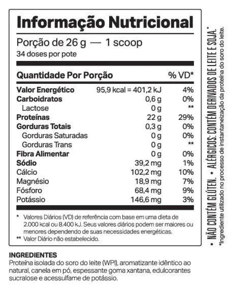 - Baixo Teor de Carboidratos e Gorduras: Com uma formulação focada na proteína, este whey protein isolado oferece um baixo teor de carboidratos e gorduras, sendo uma opção ideal para quem busca uma fonte de proteína pura e de qualidade.