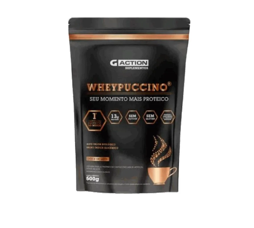 Wheypuccino Refil (500g) Wheypuccino é uma combinação perfeita de café gourmet e proteína do soro do leite, com 13 gramas de proteína por dose. Pode ser consumido a qualquer hora do dia, tanto por atletas e praticantes de atividades físicas que necessitam de um aporte proteico em suas dietas, como por aqueles que desejam desfrutar uma bebida quentinha, deliciosa e cremosa! É tão saboroso quanto um autêntico cappuccino italiano e tão funcional quanto uma dose de Whey Protein. A proteína é essencial para a manutenção, recuperação e ganho de massa magra. Possui aminoácidos essenciais que são rapidamente absorvidos pelo intestino, aumentando a sua concentração no plasma e promovendo a síntese proteica. O café possui ação termogênica pois é fonte natural de cafeína. É um excelente estimulante energético que ativa o organismo, acelerando o metabolismo e auxiliando na queima de gordura. São tantos benefícios, que tomar café nunca mais será a mesma coisa. BENEFÍCIOS: - Fornece 13g de proteína por dose; - Contribui para o aumento da massa magra; - Estimula a síntese proteica; - Auxilia a recuperação muscular; - Promove a termogênese muscular; - Auxilia na queima de gordura.