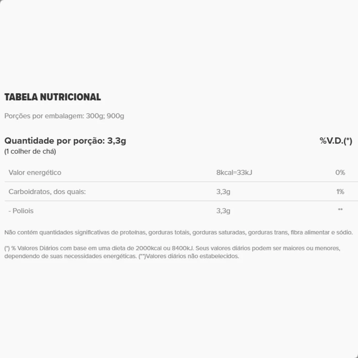 A composição é de xilitol puro extraído de fontes vegetais, livre de glúten, lactose, corantes e conservantes. A estabilidade térmica permite uso em assados e cozidos.