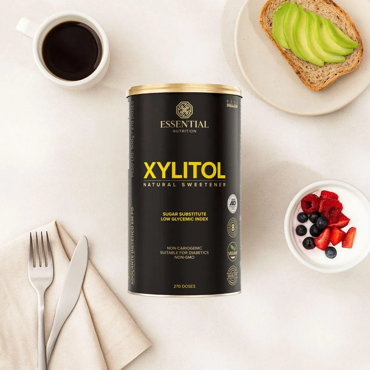 Xylitol 900 g da Essential Nutrition é uma versão econômica do adoçante natural de origem vegetal, ideal para quem utiliza com frequência em substituição ao açúcar. Oferece o mesmo poder de doçura da sacarose com menor efeito glicêmico.