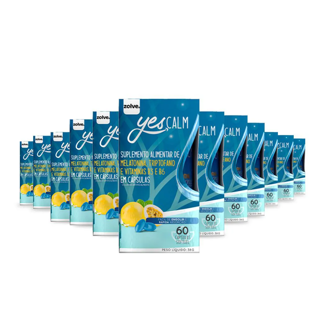 Yes Calm - Melatonina, 60 Cápsulas uso diário Zolve labs 12 Potes
