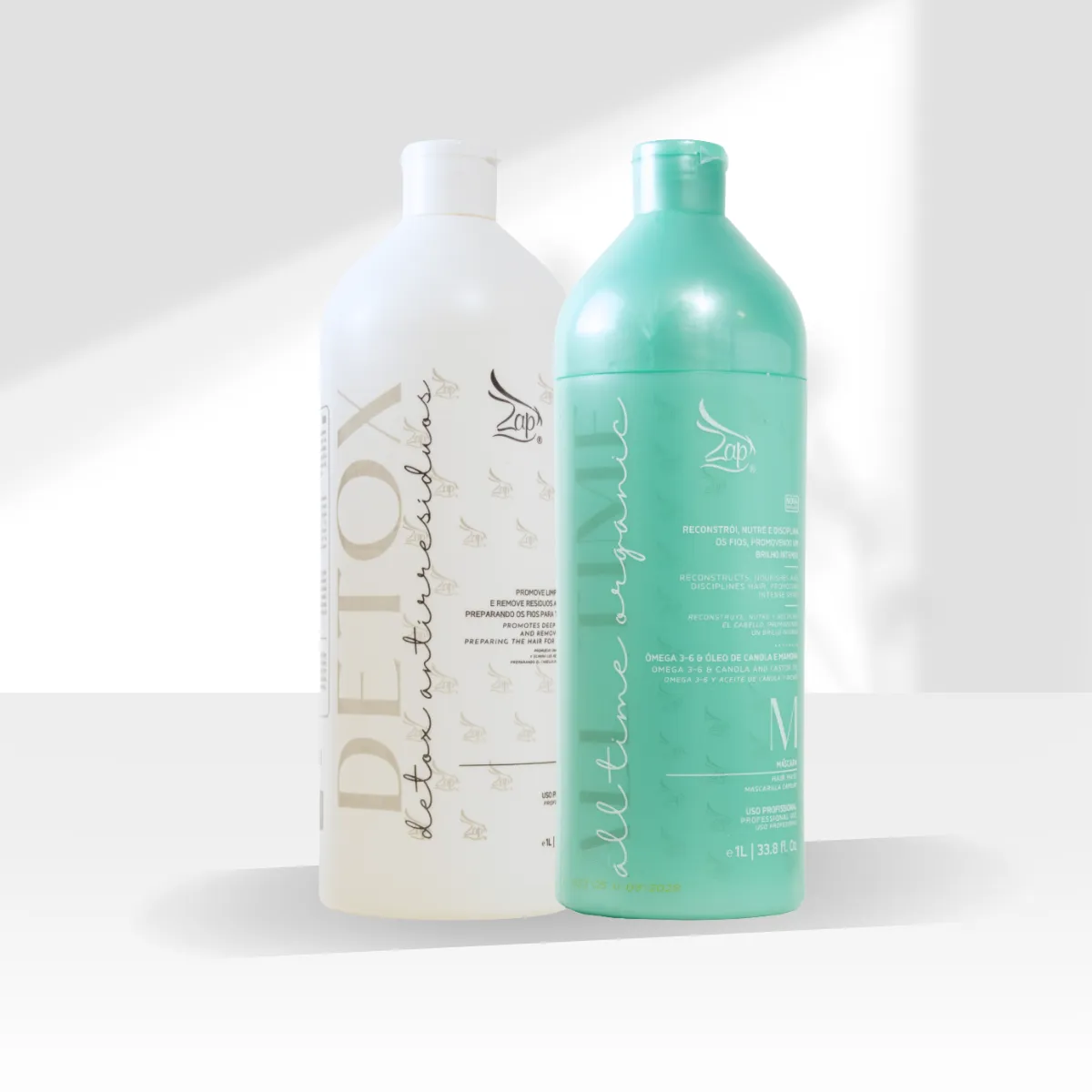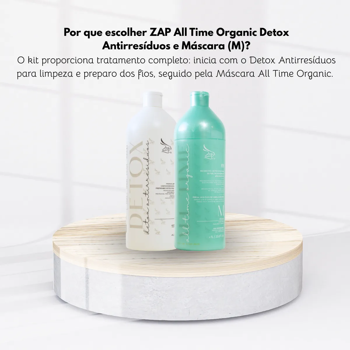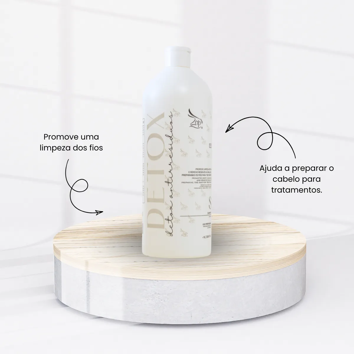O Shampoo Detox da Zap All Time Organic promove uma limpeza intensa e remove todos os resíduos acumulados nos fios, abrindo as cutículas e preparando os cabelos para o tratamento condicionante orgânico.