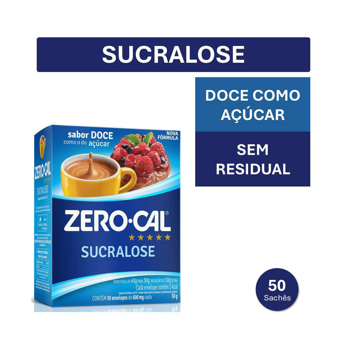 Adoçante em Pó Zero-Cal Sucralose - 1 Unidade com 50 Sachês de 600mg cada