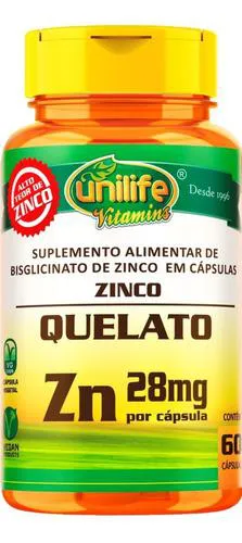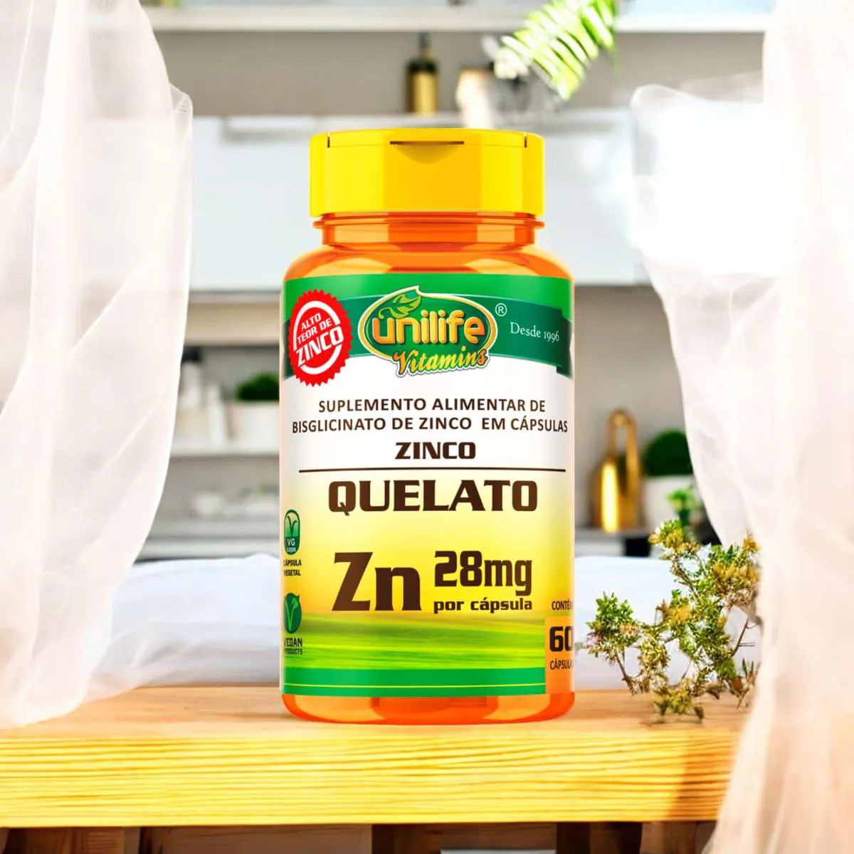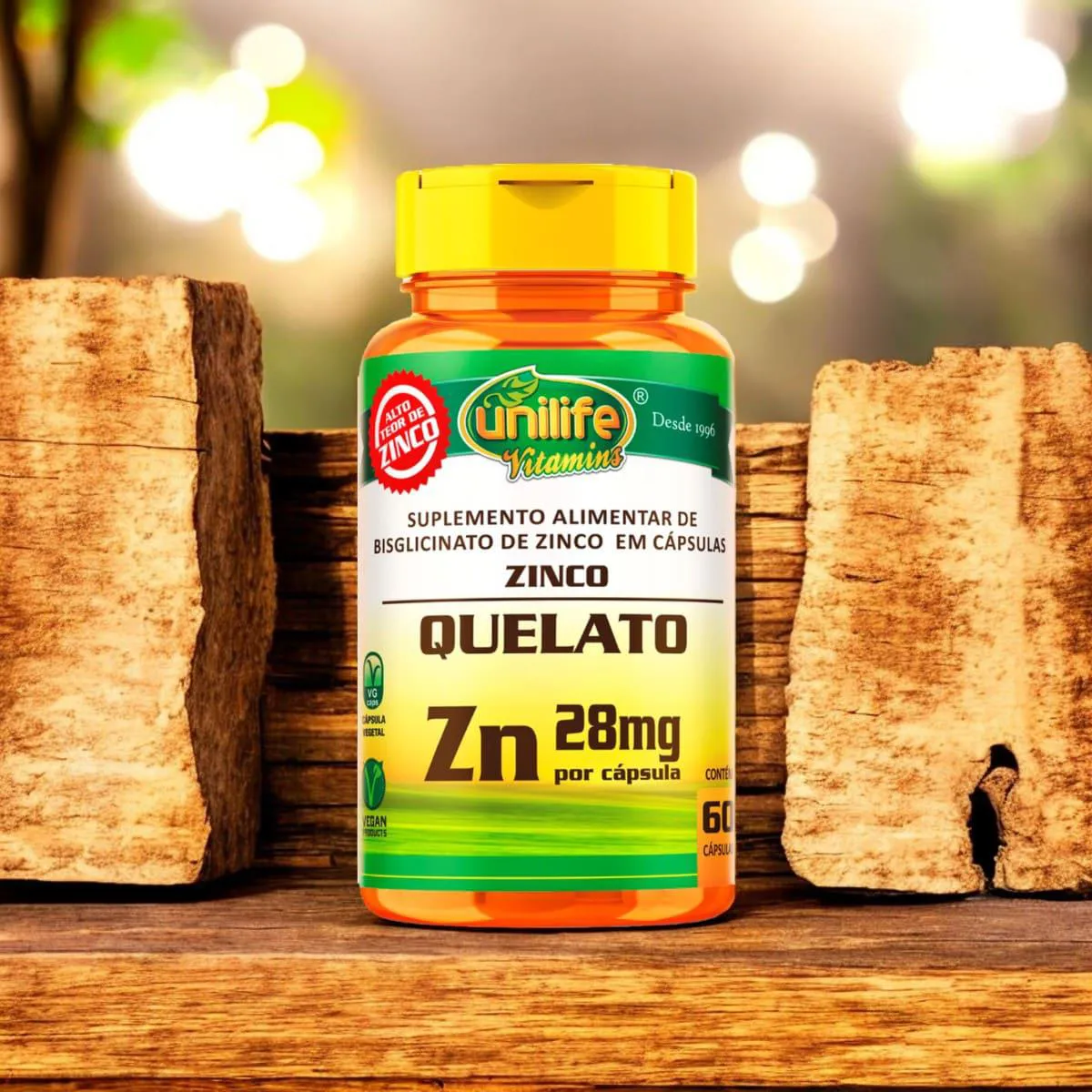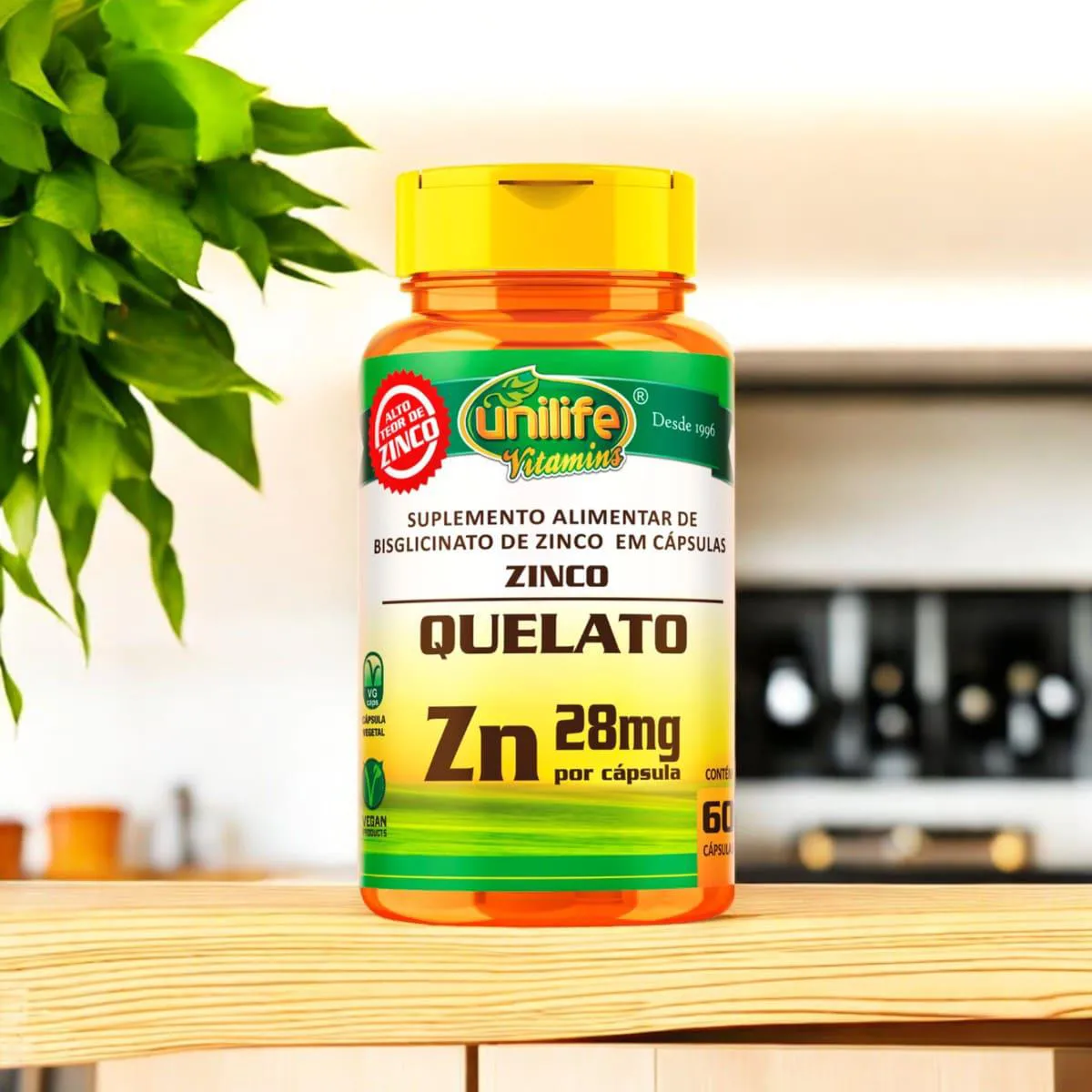 O Zinco Quelato da Unilife é um suplemento alimentar que fornece 28 mg de zinco na forma de bisglicinato por cápsula, reconhecido por sua alta biodisponibilidade. O zinco é um mineral essencial que desempenha diversas funções no organismo, incluindo suporte ao sistema imunológico, ação antioxidante e manutenção da saúde da pele, cabelos e unhas.