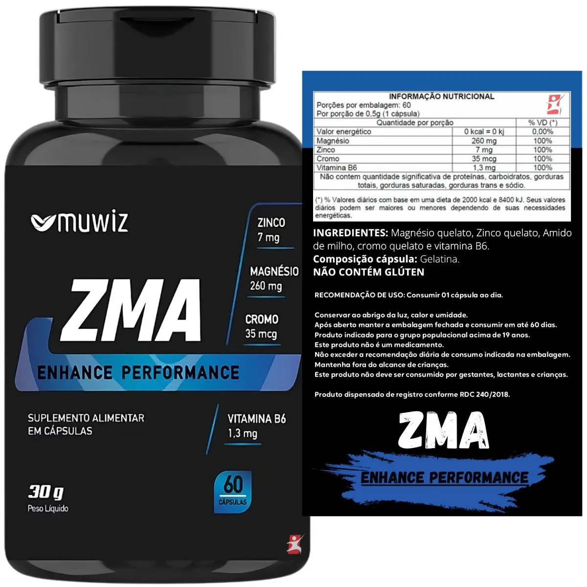O ZMA Muwiz é um suplemento alimentar desenvolvido para otimizar o desempenho físico, o sono profundo e a recuperação muscular. Sua fórmula avançada combina 260mg de magnésio, 7mg de zinco, 35mcg de cromo e 1,3mg de vitamina B6 — nutrientes que atuam sinergicamente na regulação hormonal, imunidade e na função muscular.