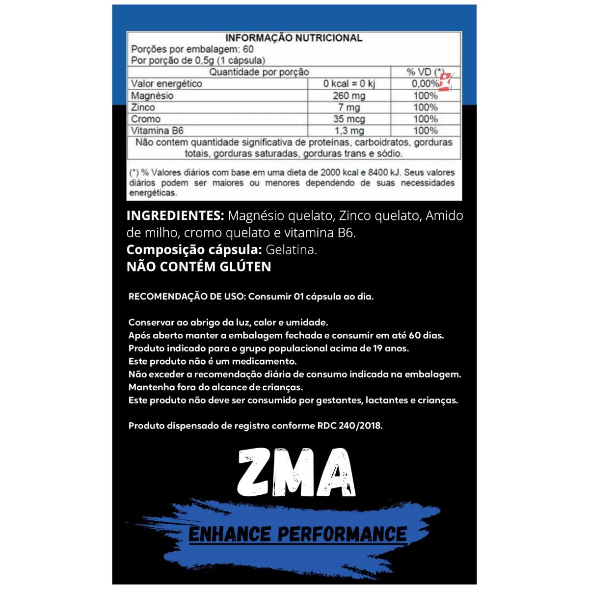 Zma Enhance Performance Zinco + Magnéiso + Cromo + Vit B6 1 Ao Dia 60 Capsulas - Muwiz