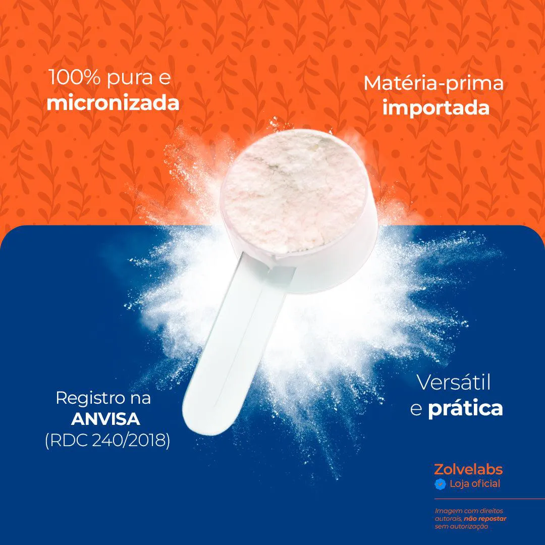 Ausência de aditivos, corantes e aromatizantes: garante pureza e máxima concentração de creatina, sem interferências.